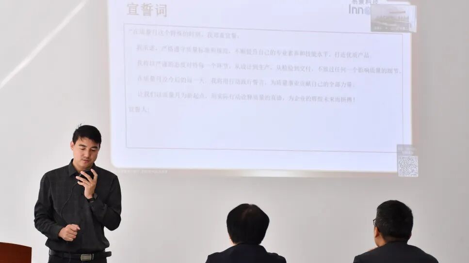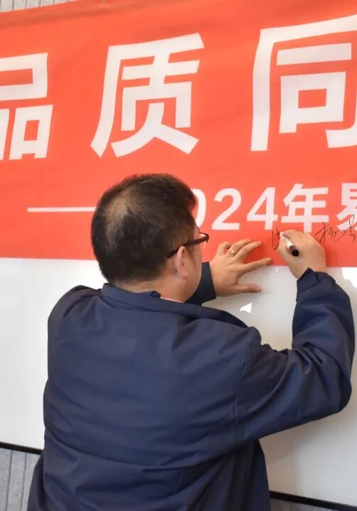 现场气氛热烈非常,在主持人的激情倡议下,全体人员伴着激昂乐声庄严宣誓。誓言铿锵,于会场久久回荡,众人以坚定之声,郑重承诺坚守品质,尽显对打造卓越的决心。