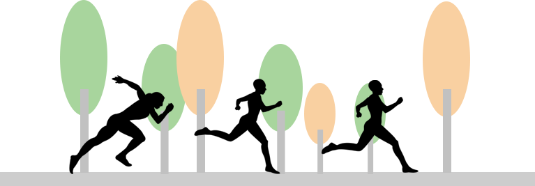 男子组、女子组在做热身运动,准备开跑,让我们一起来猜猜冠亚季军会是谁呢?