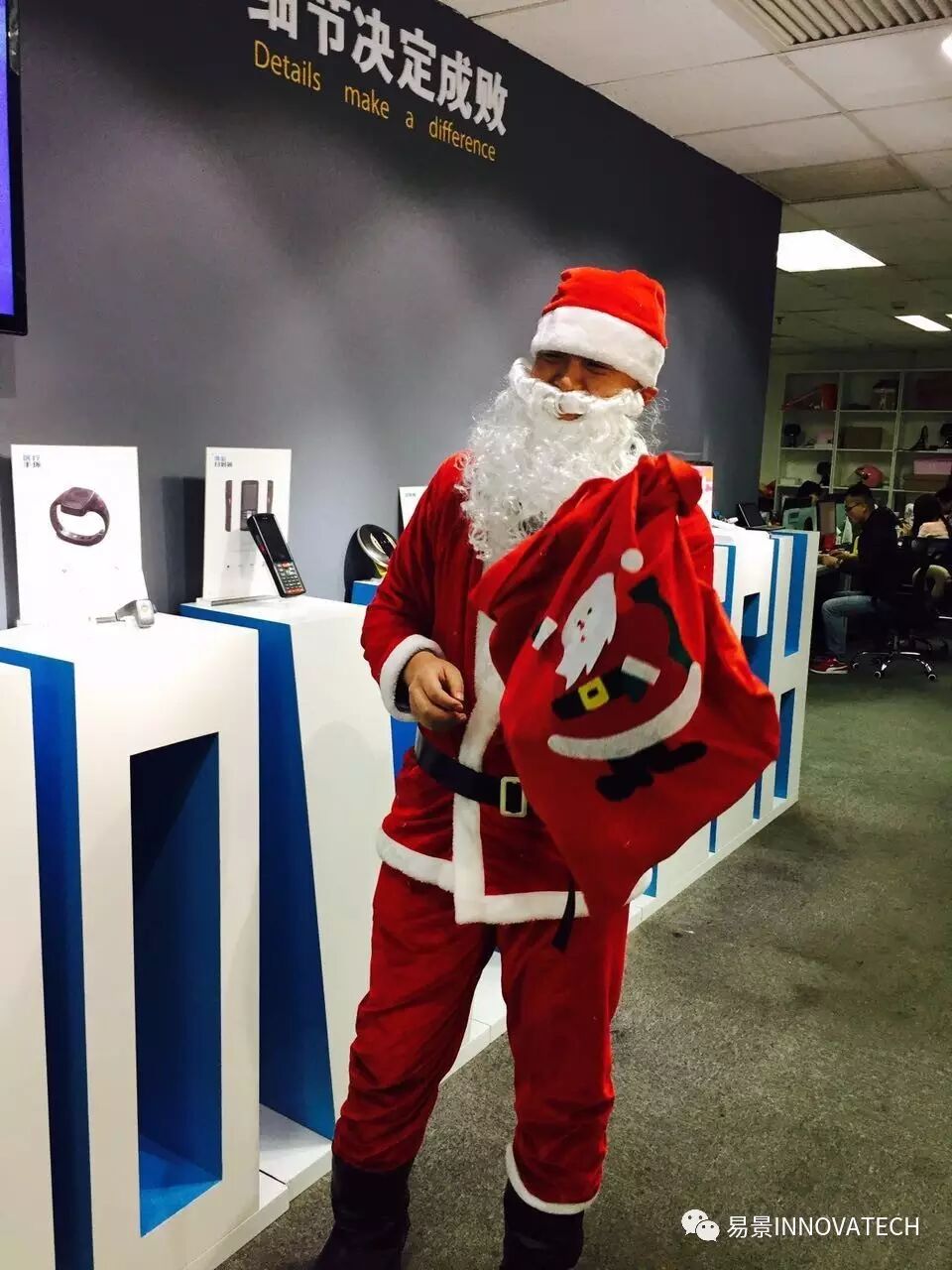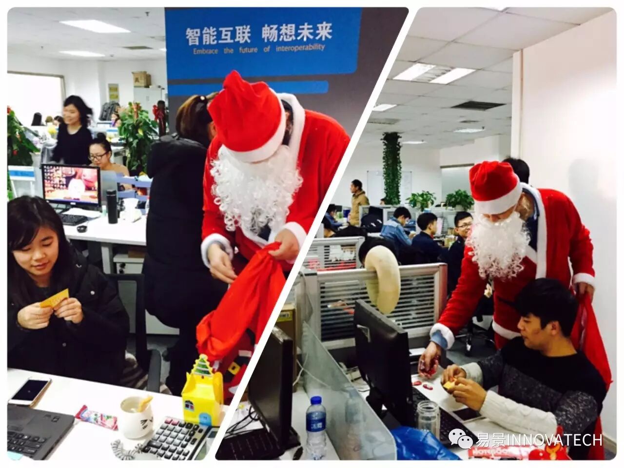 辛勤工作之际,猛然抬头,圣诞老人意外出现在易景办公室!赶紧来看看他的红口袋里有哪些礼物吧。