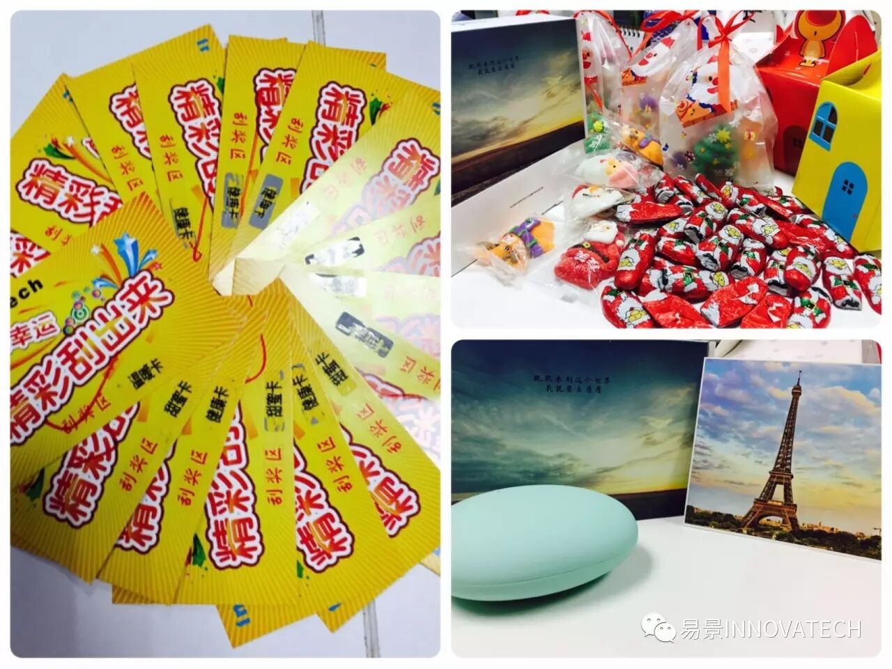 同时,圣诞老人也传递着好运。幸运的同事抽到了暖手宝、运动腰带等精美的礼品。