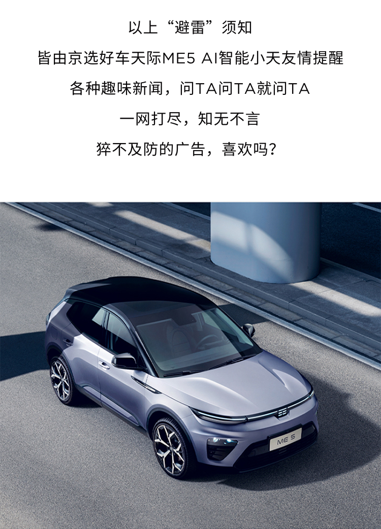 ENOVATE天际汽车,为大众造好车!增程式A+级SUV 京选好车天际ME5,NEDC续航1012km,售价13.88万元起;五屏互联智能纯电旗舰SUV 天际ME7,创新配备84项智能科技配置,售价23.88万元起。
