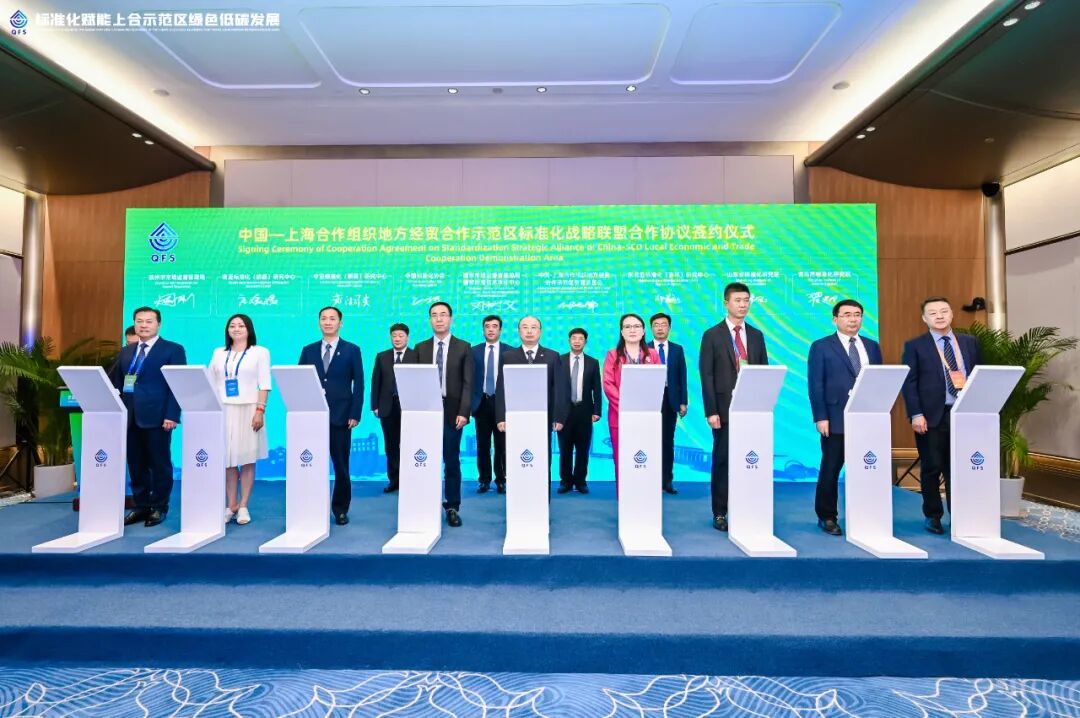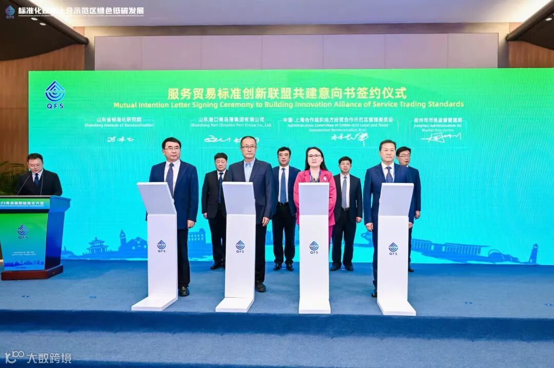 会议在上合示范区标准化战略联盟、服务贸易标准创新联盟的成立中拉开帷幕。国家市场监督管理总局国家标准技术审评中心、中国—上海合作组织地方经贸合作示范区管理委员会、中国标准化协会、中亚标准化(新疆)研究中心、南亚标准化(成都)研究中心、东北亚标准化(吉林)研究中心、山东省标准化研究院、青岛市标准化研究院、胶州市市场监督管理局九方签署《中国—上海合作组织地方经贸合作示范区标准化战略联盟合作协议》(以下简称《合作协议》);中国—上海合作组织地方经贸合作示范区管理委员会分别与山东港口青岛港集团有限公司、山东省标准化研究院、胶州市市场监督管理局签署《服务贸易标准创新联盟合作共建意向书》(以下简称《意向书》)。