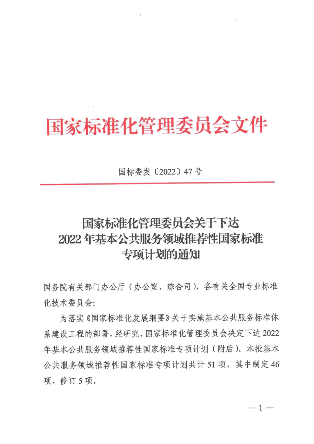 国家标准化管理委员会关于下达2022年基本公共服务领域推荐性国家标准专项计划的通知