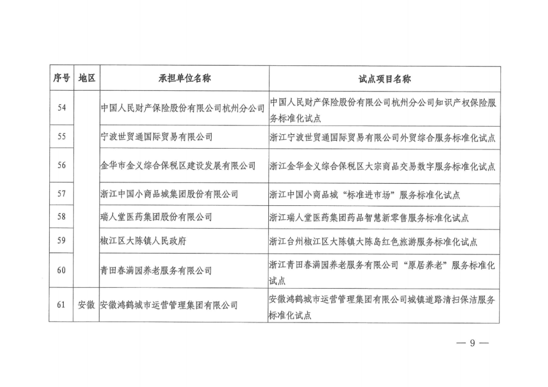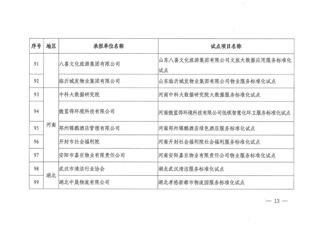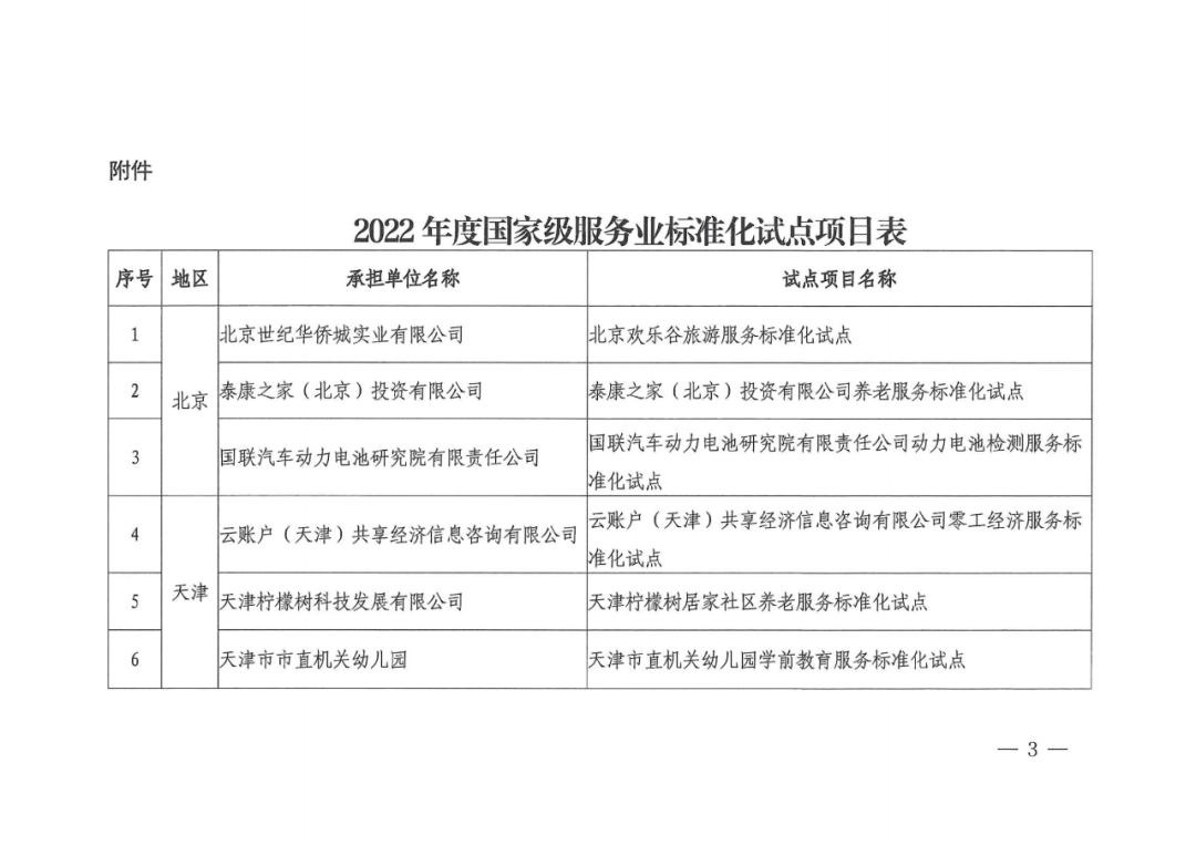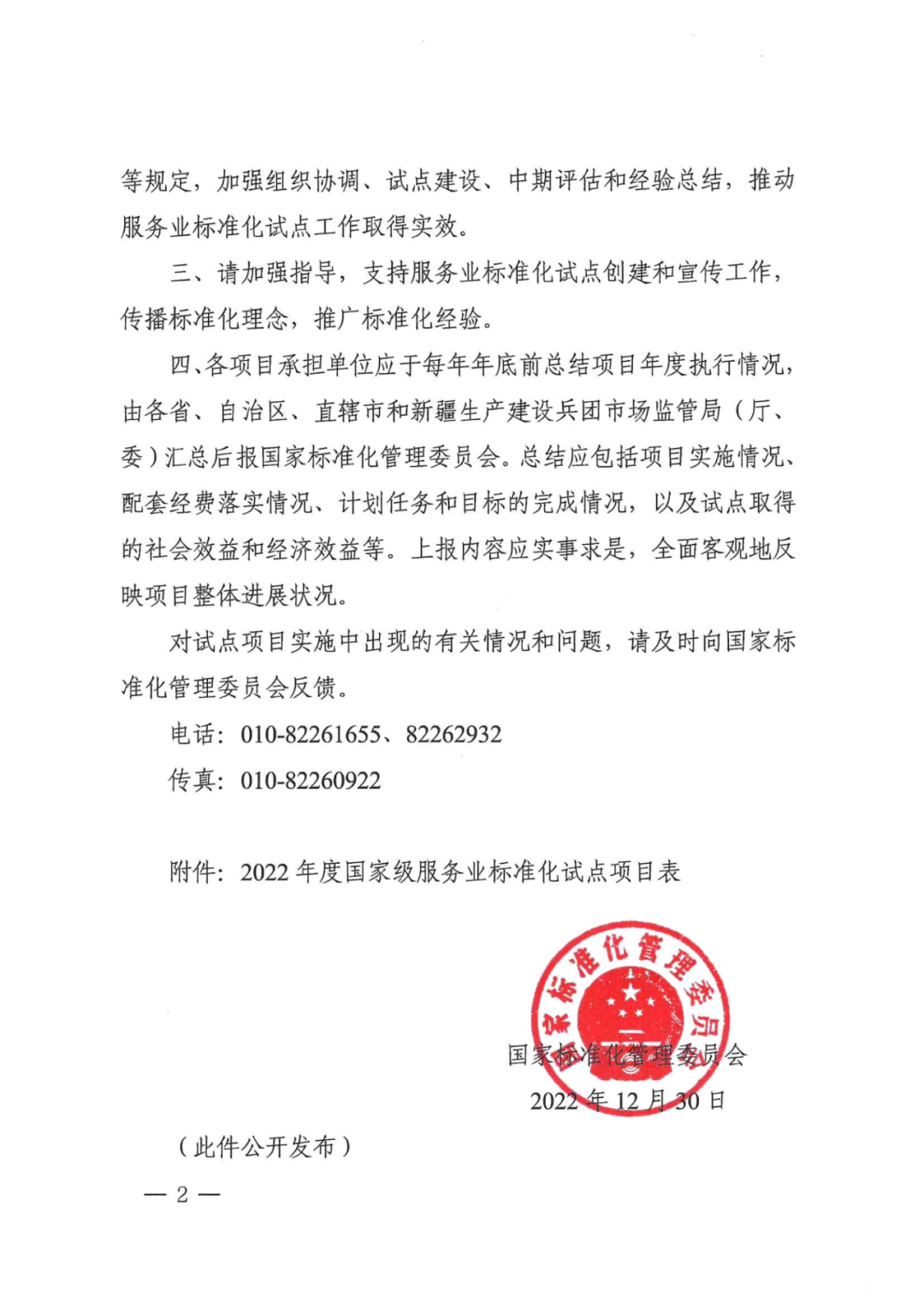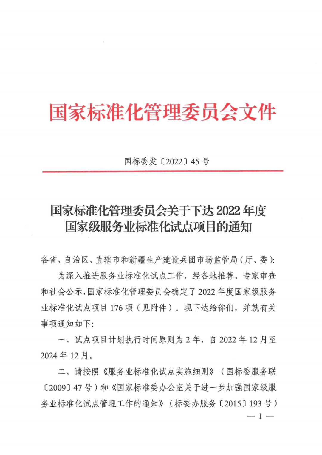 国家标准化管理委员会关于下达2022年度国家级服务业标准化试点项目的通知
