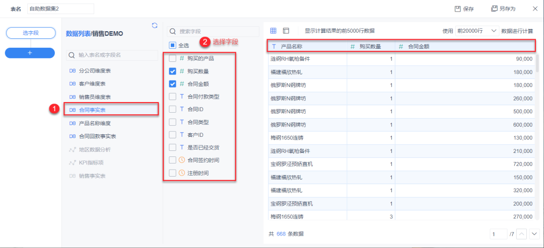 再解决取数效率低下的问题。在我看来工具是影响我们效率的最重要因素,一个合适的工具,可以在一定程度上缓解这一问题。如果我们用SQL来取数,就需要编写代码,如果需要调用多张表,就更加复杂了。而如果我们用BI工具来取数(本文以FineBI举例,文末可下载),由IT部门做好基础的数据准备,数据分析师只需要勾选就能轻松完成取数,不用代码,多张表也能轻松hold住,效率MAX!