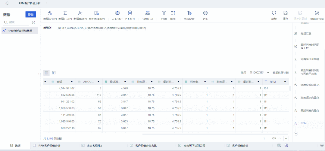 金字塔模型、KANO分析模型、RFM模型、购物篮分析模型、四象限模型......都是常用常新的经典模型,借助FineBI,只需通过鼠标操作就能快速搭建出各种模型(如下图),而且可以根据需要随时调整,进行探索式分析。