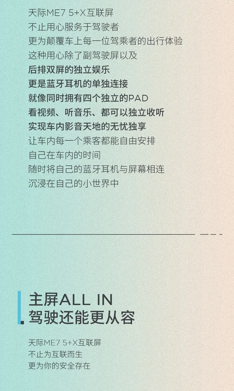 ENOVATE天际汽车,为大众造好车!增程式A+级SUV 京选好车天际ME5,NEDC续航1012km,售价13.88万元起;五屏互联智能纯电旗舰SUV 天际ME7,创新配备84项智能科技配置,售价23.88万元起。