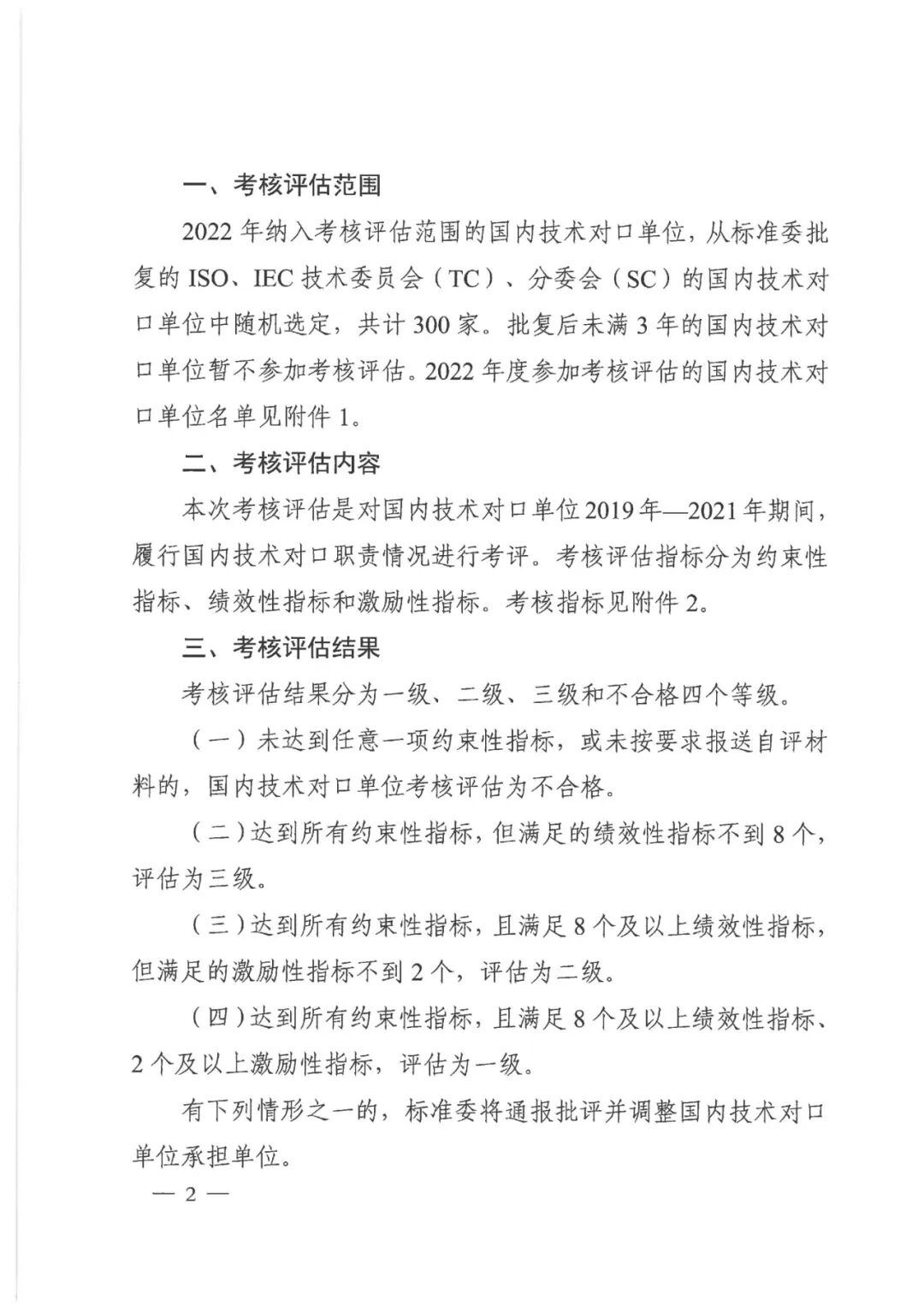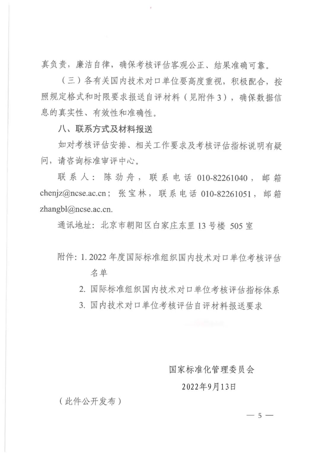 国家标准化管理委员会关于开展2022年度国际标准化组织(ISO)和国际电工委员会(IEC)国内技术对口单位考核评估工作的通知