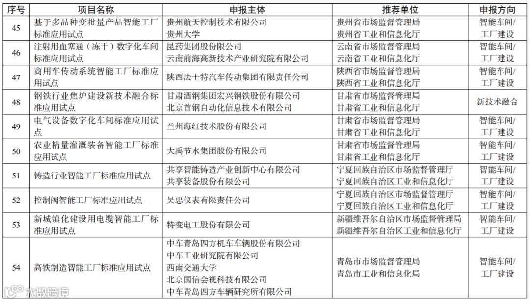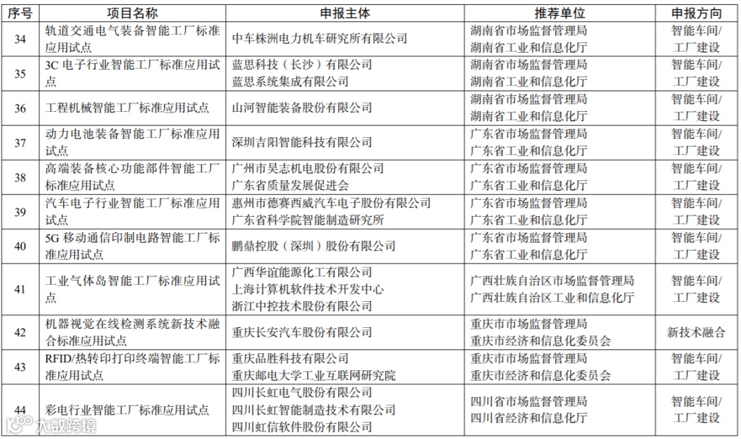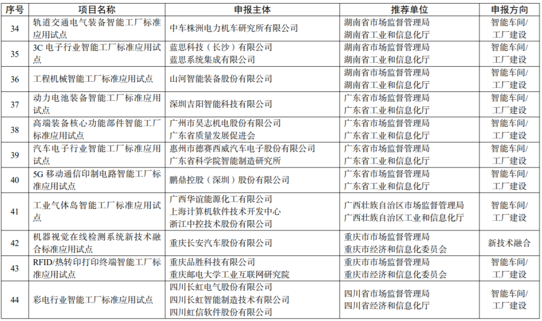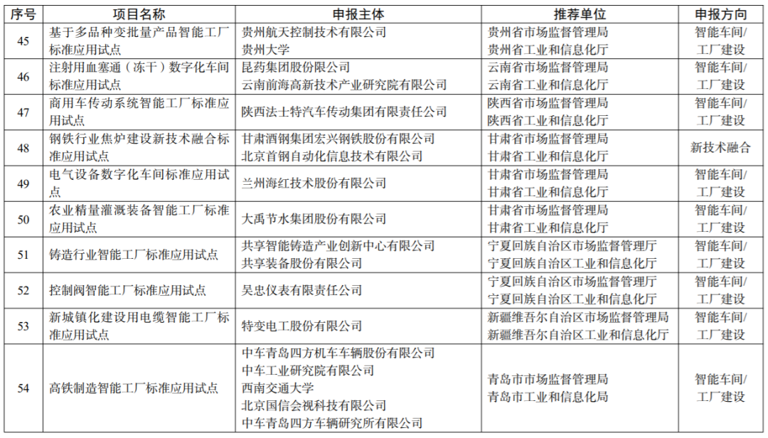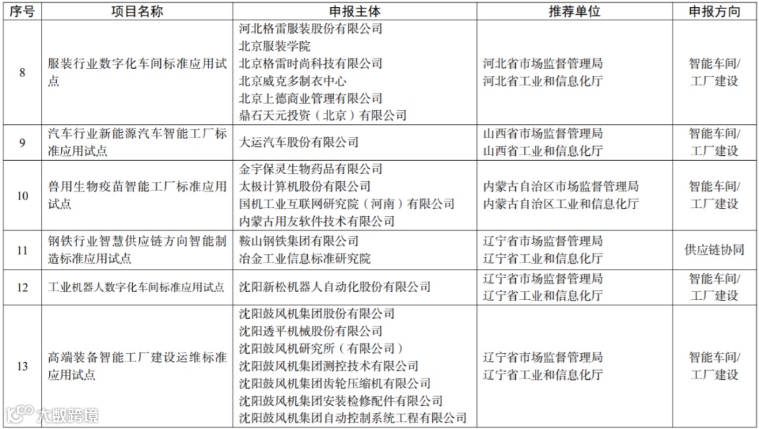 根据《关于开展2022年度智能制造标准应用试点工作的通知》(市监标技发〔2022〕34号),现将拟入选的2022年度智能制造标准应用试点项目名单进行公示,请监督提出意见。如有异议,请在公示期内将书面意见反馈至市场监管总局标准技术司、工业和信息化部装备工业一司。