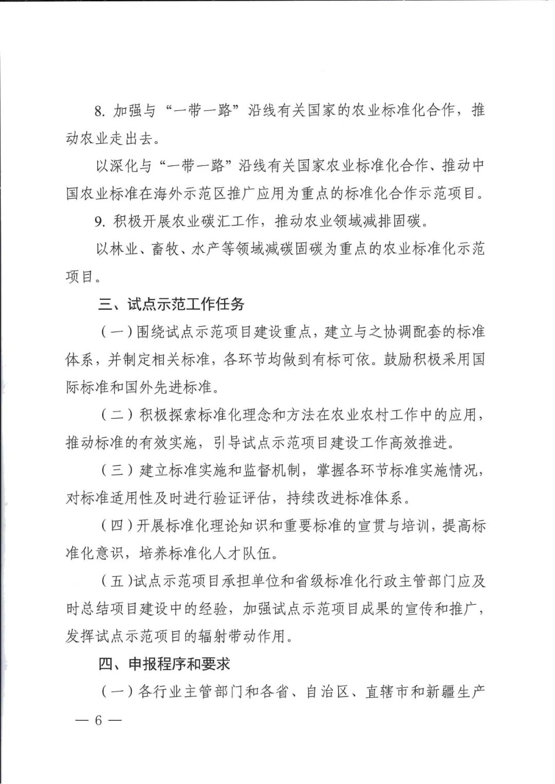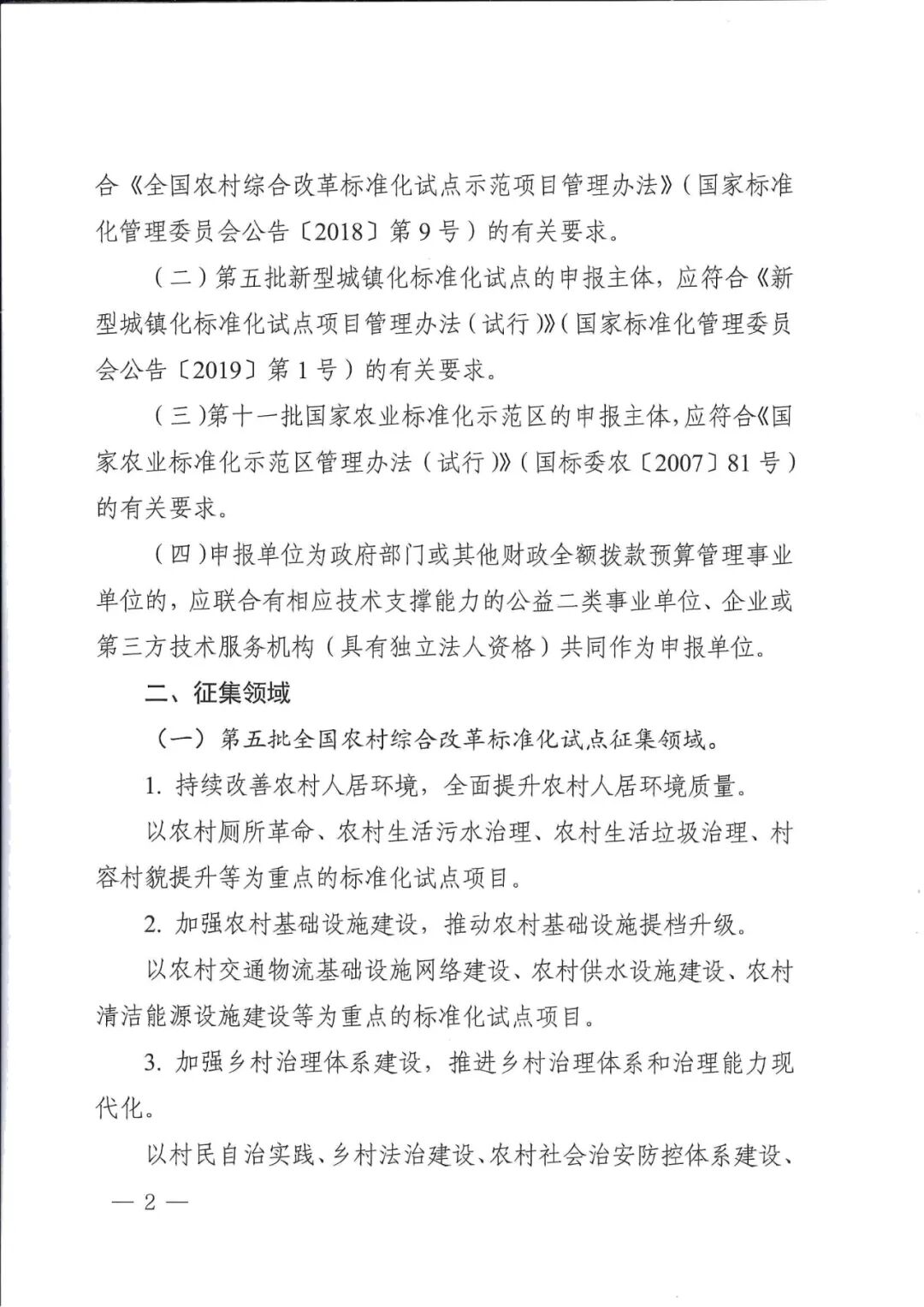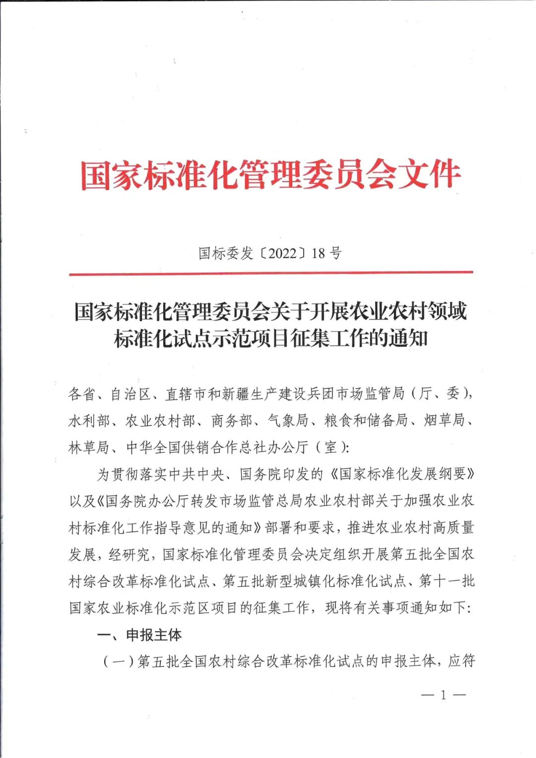 国家标准化管理委员会关于开展农业农村领域标准化试点示范项目征集工作的通知