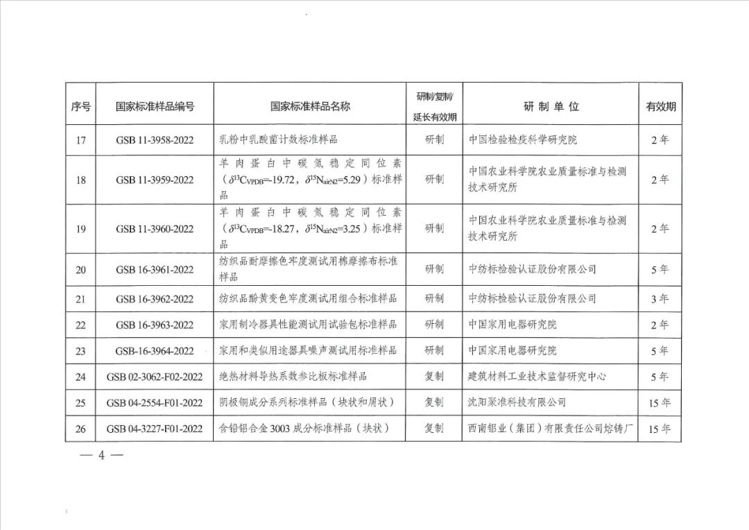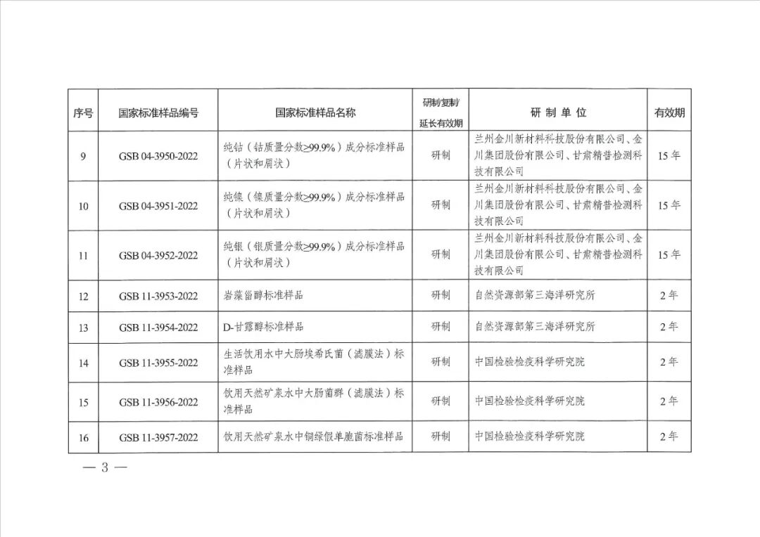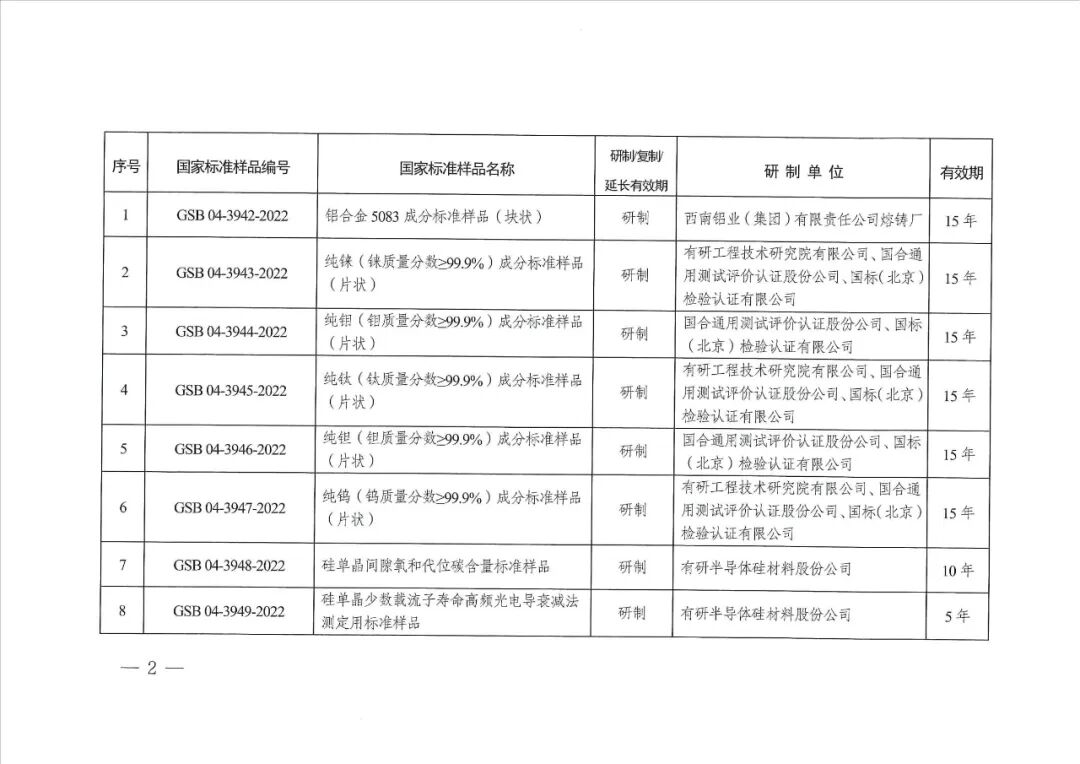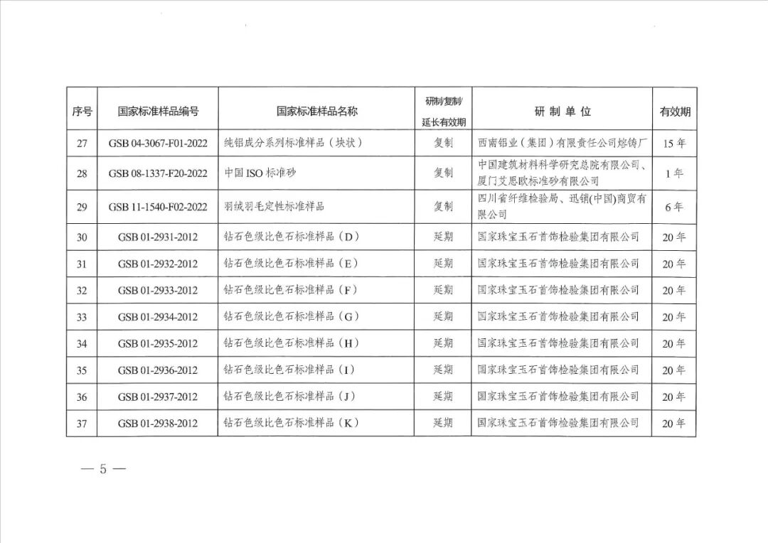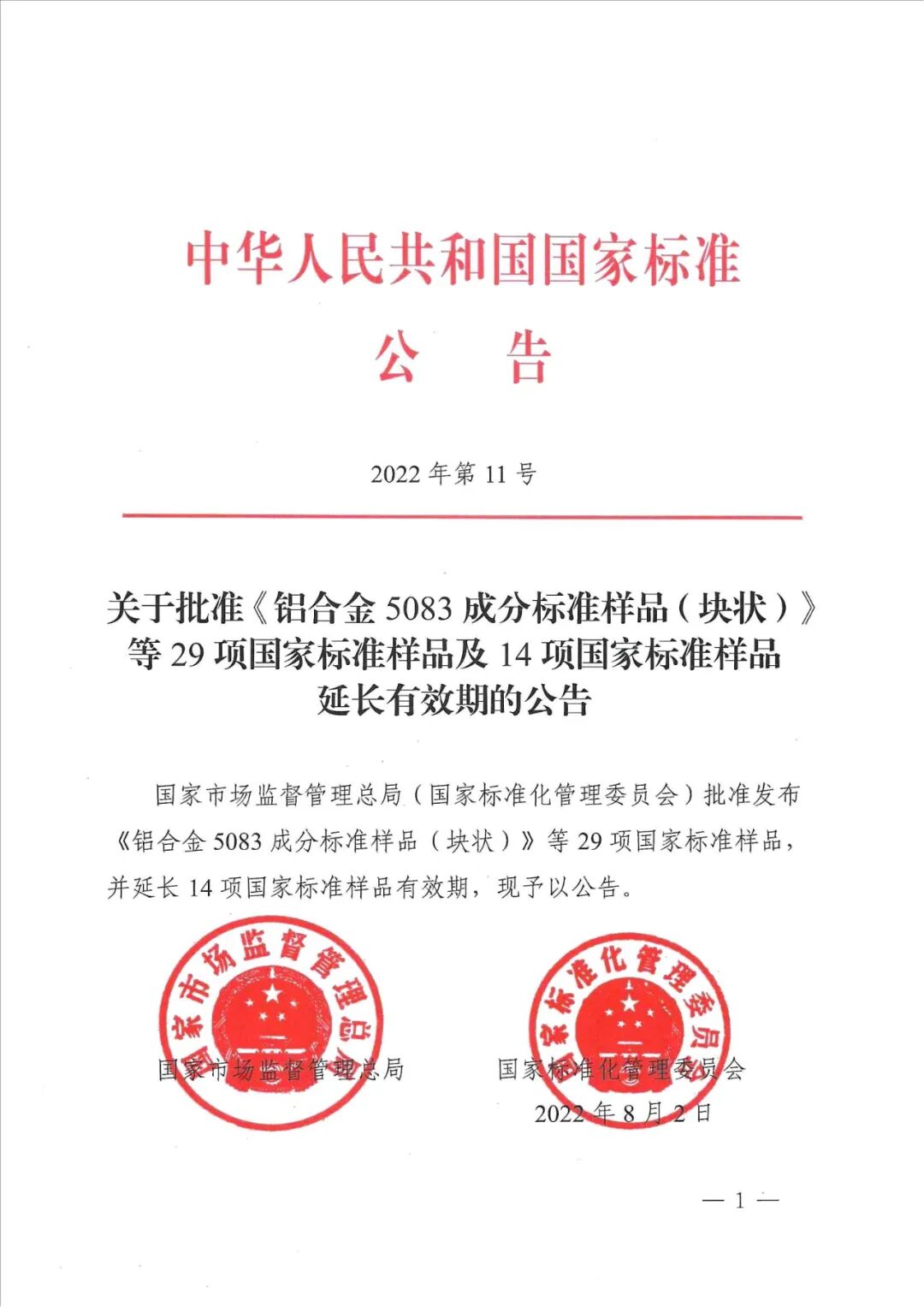 关于批准《铝合金5083成分标准样品(块状)》等29项国家标准样品及14项国家标准样品延长有效期的公告
