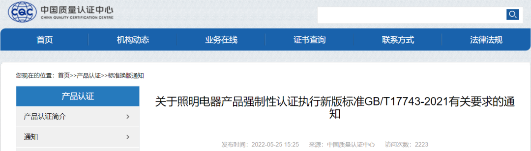 关于照明电器产品强制性认证执行新版标准GB/T17743-2021有关要求的通知