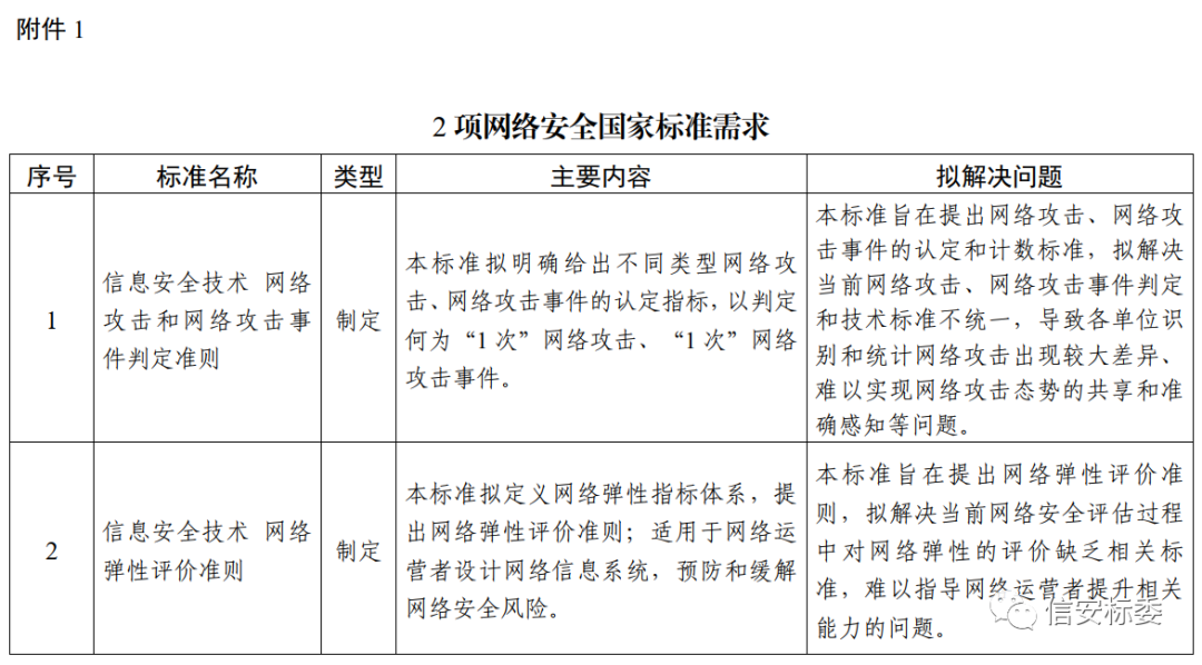 为加强网络安全国家标准在国家网络安全保障工作中的基础性、规范性、引领性作用,全国信息安全标准化技术委员会(简称“信安标委”)秘书处坚持问题导向,根据国家网络安全有关工作急需,研究提出2项标准编制需求(见附件1)。现将需求印发给你们,请围绕需求按照标准申报要求(见附件2)做好申报工作,于2022年5月20日前通过信安标委网站首页(www.tc260.org.cn)“关于发布2项网络安全国家标准需求的通知”模块进行申报。
