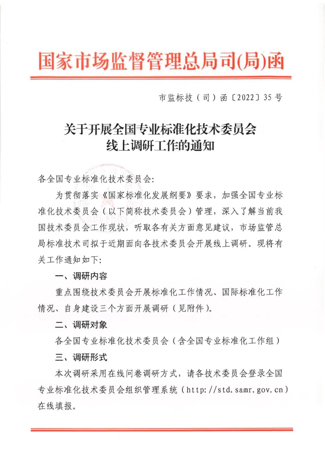 关于开展全国专业标准化技术委员会线上调研工作的通知