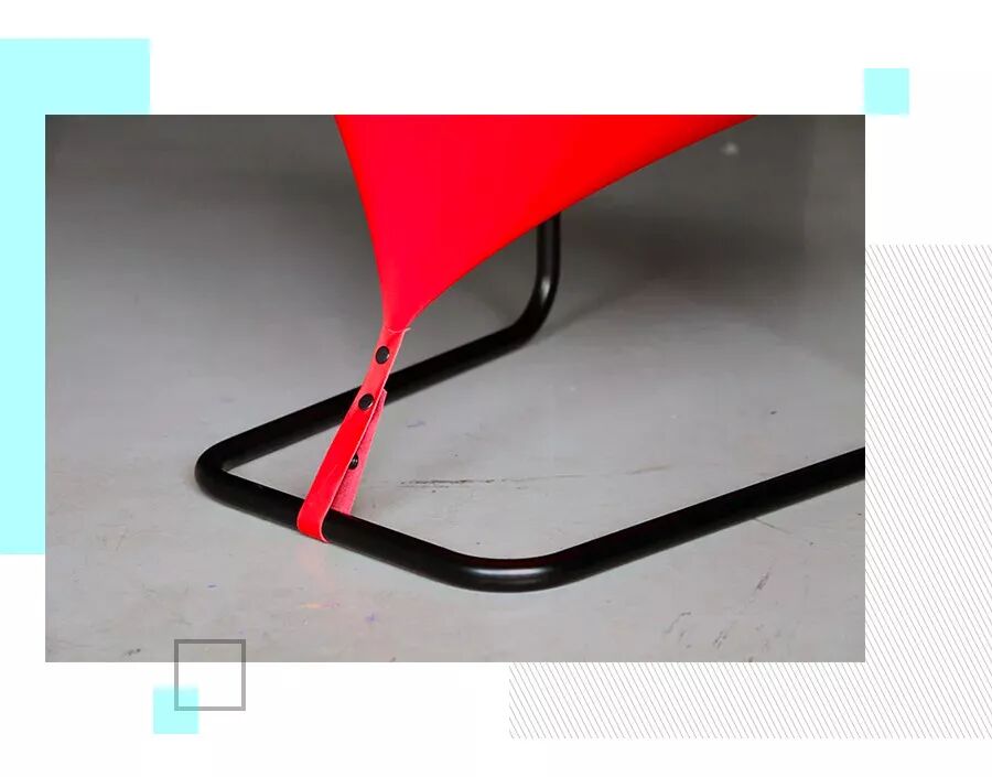 红色织布与黑色钢管组成了一个锥形的“吊床”,
