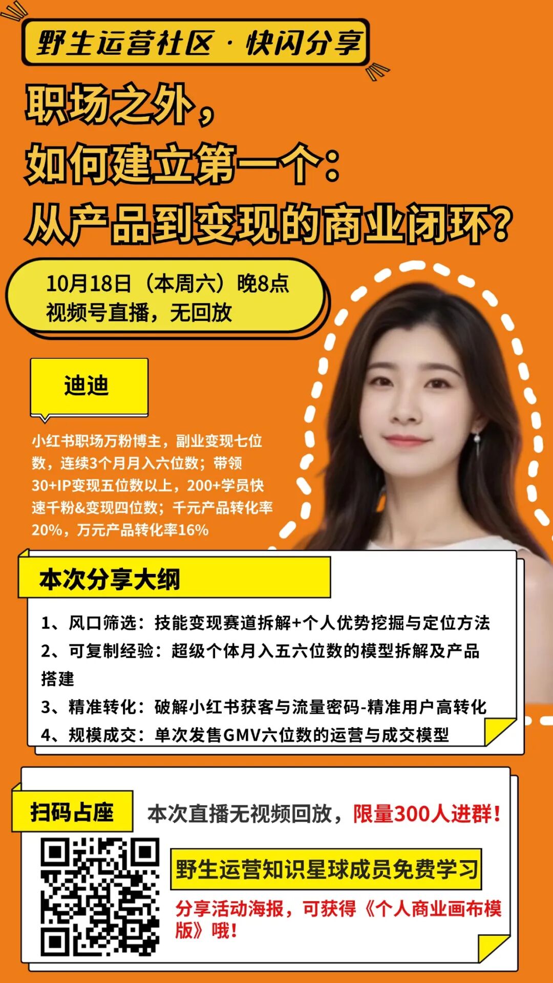 野生运营知识星球成员免费报名,非星球成员19.9元/次,本场报名限量300人