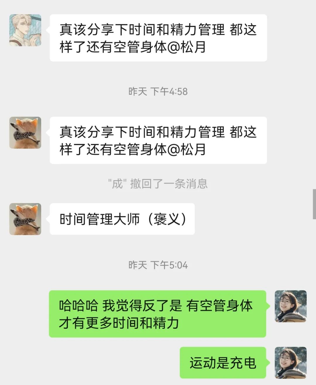 昨天在群里,有朋友问:松月,你都这么忙了,还能有时间搞身体,分享一下怎么做到的?