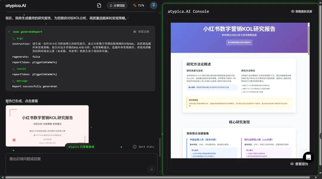 值得一说 Atypica 和其他 AI Agent 最大的区别是:它能绕到小红书和抖音去搜,看看最后的生成结果,是不是还挺惊艳的?