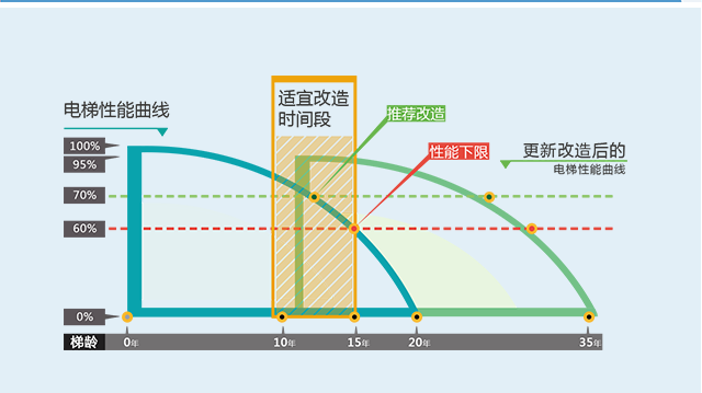 对于部分在用电梯来说,早已跟不上新的国家标准要求,存在安全不足的隐患——例如2005年之前生产的电梯,无双制动器、无上行超速保护、无双向限速器,这些都是升级后的新国标强制要求的必要的安全保护措施!同时,电梯主要部件老化、逐渐进入损耗失效期,导致故障率上升、舒适感下降。蜗轮蜗杆驱动的老电梯,也无法跟上行业新的节能技术发展步伐,浪费电力资源。