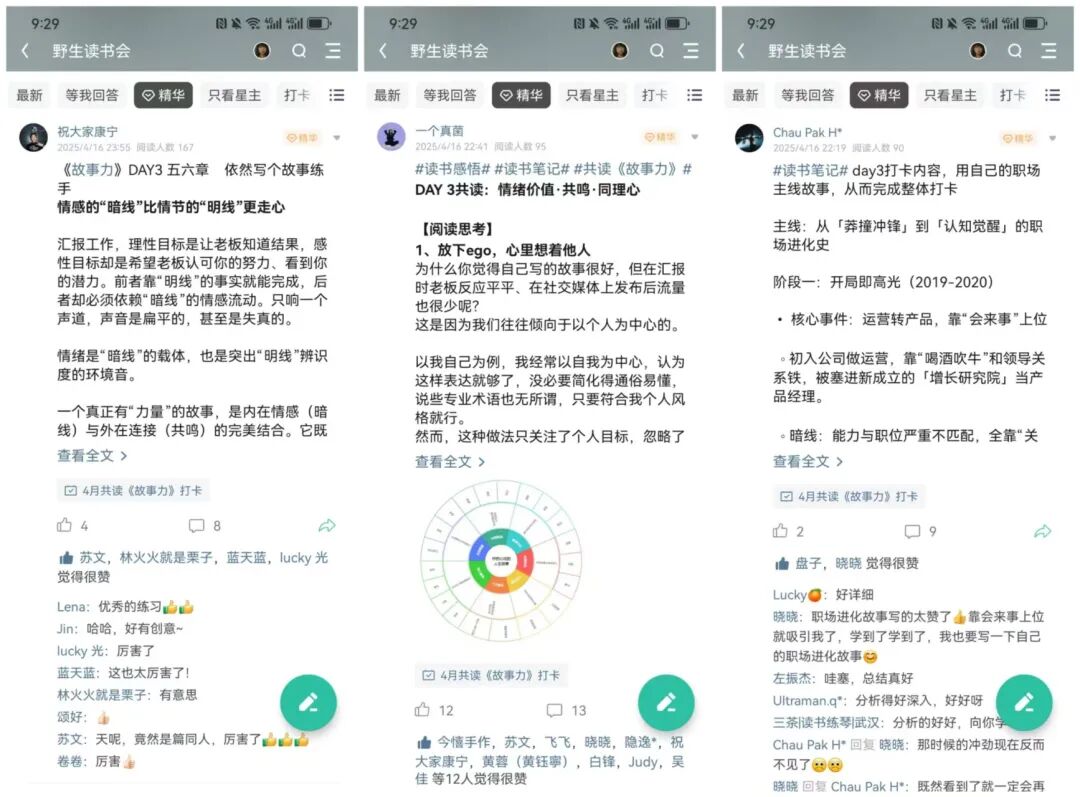 目前正在进行的《故事力》共读,还给大家安排了“线上故事工作坊”,手把手教大家写故事,把自己的人生故事讲好,在关键时刻赢得关键机会,超期待!读书不是目的,用书才是目的。