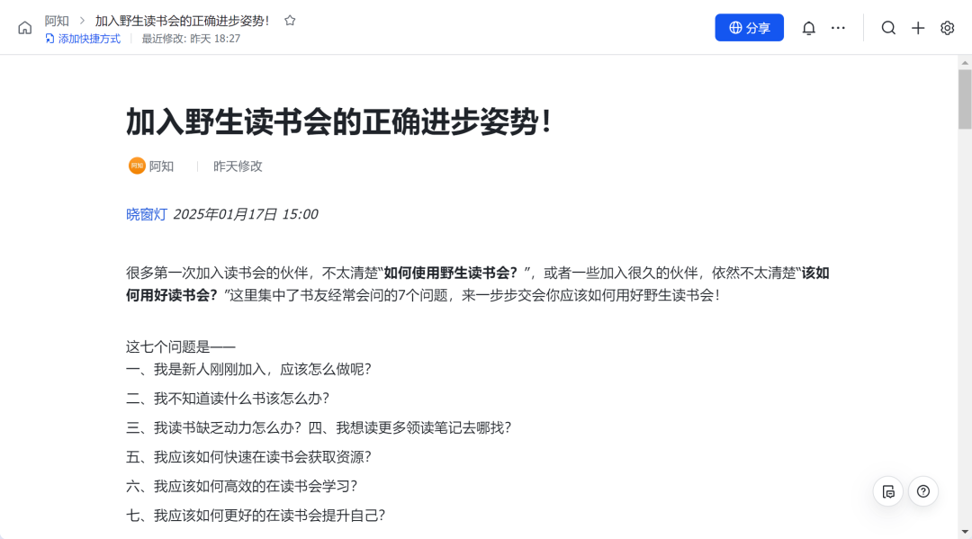 1、新人来到「野生读书会」要做什么?