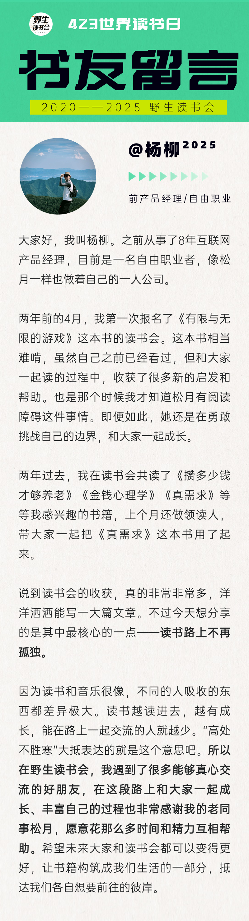六、来看看「野生读书会」的老朋友怎么说吧