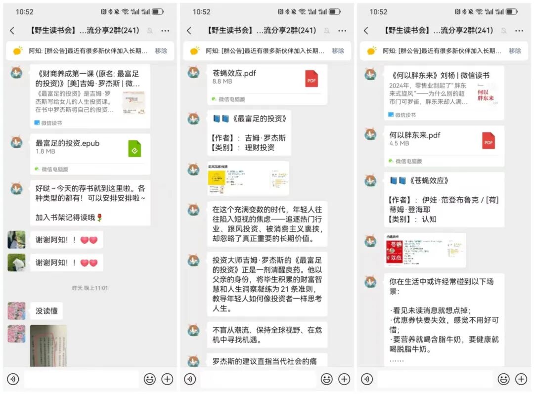 如果说领读人的领读稿帮你把一本书读薄,那和读书会社群里的小伙伴对一本书交流,就是把一本书读厚的过程。