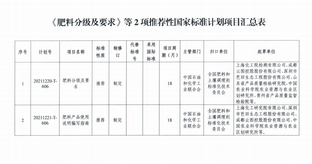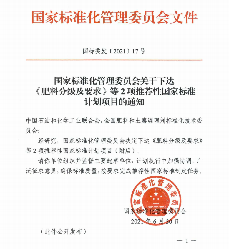 国家标准化管理委员会关于下达《肥料分级及要求》等2项推荐性国家标准计划项目的通知