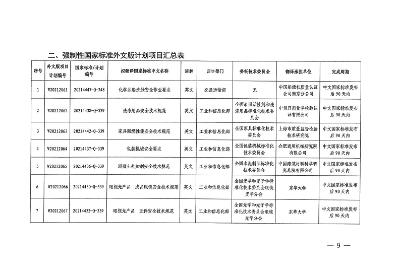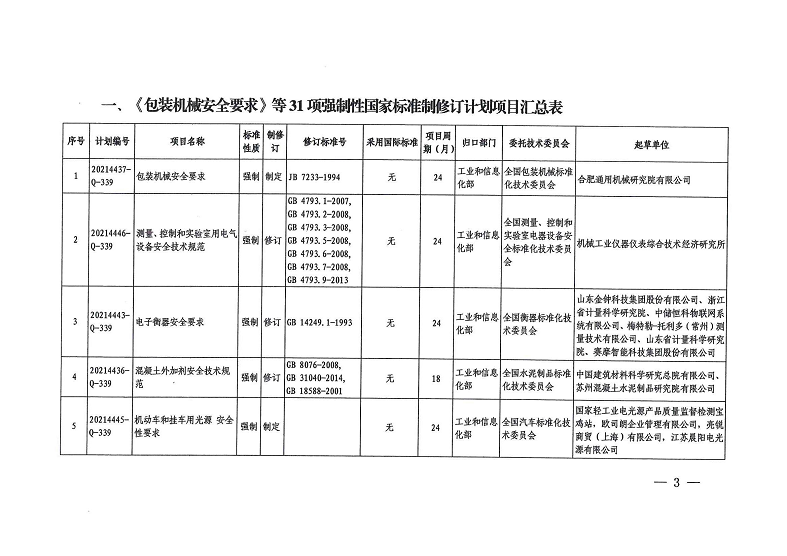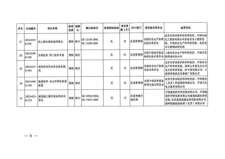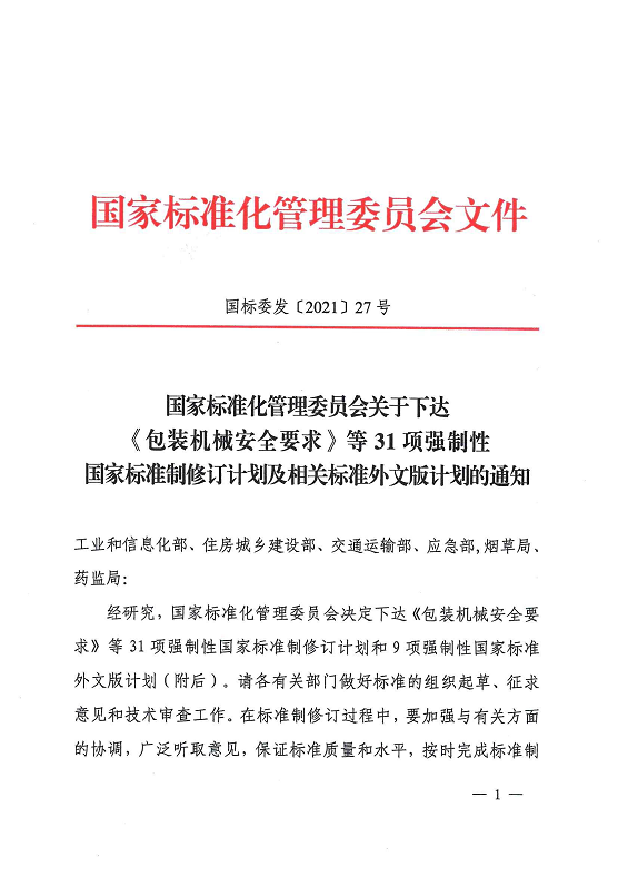 国家标准委下达31项强制性国家标准制修订计划及相关标准外文版计划