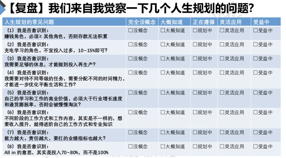 以上是我50分钟的简单分享,用数字化思维重新规划你的人生的一些基本逻辑,如果真要扩展出来得两天一夜的时间。希望大家能重新复盘自己前3年的精力分配,重新规划自己的人生目标。