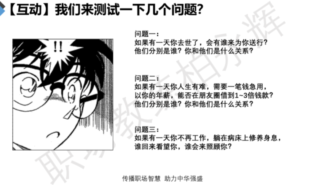 我接下来进行扎心三连问,第一个问题:如果你去世了,会有谁过来给你送行,分别是多少人?还是说仇人过来找你了,或者说连家人都不来了,这种情况其实非常常见。