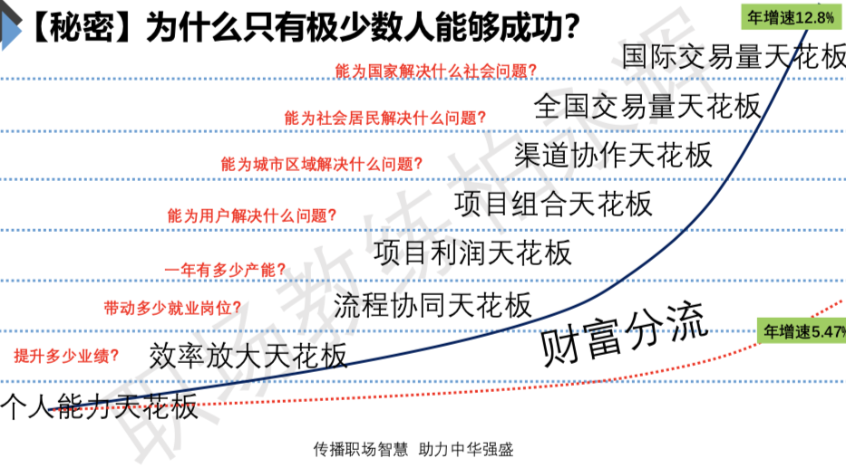 答案是你解决的是“个人能力天花板”,还是“ SOP流程效率天花板”?还是解决“流程协同的天花板”,还是解决项目当中的“降本增效利润天花板”,还是解决项目打组合当中能为客户提供多少种一客多单的“项目组合天花板”?还是说我能够解决一方水土平安的某一块城市区域的问题,还是说我能够为社会居民解决问题,或者“国际交易量天花板”?