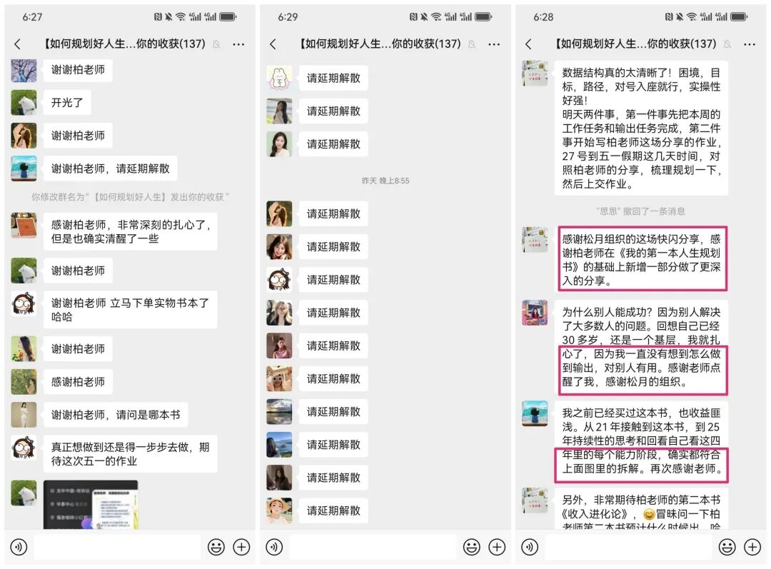 正确的方式是,我们要基于自己的资源和当下的机会去规划自己的人生,如果你正儿八经地反向梳理过自己的人生,这件事情将会是非常扎心的。你可以调自己3-5年前的时间记录,如:微信消费记录和自己的工资单,基本上就能够反向把自己的人生推演出来,后文会详述。