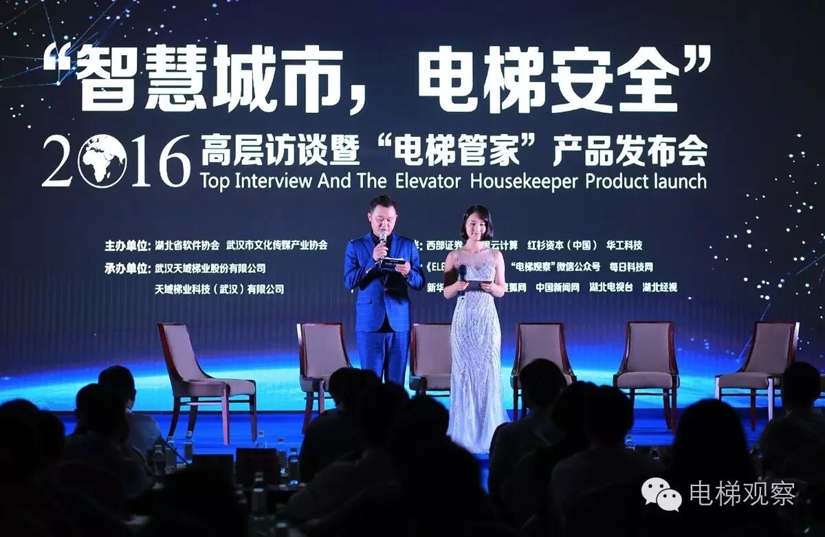 近日,武汉天域梯业股份有限公司、天域梯业科技(武汉)有限公司携手湖北省软件协会以及武汉市文化传媒产业协会,在湖北武汉会议中心隆重举办“智慧城市 电梯安全”高层访谈暨“电梯管家”产品发布会。政府部门相关领导、知名大学教授和西部证券、阿里云计算、华工科技等企业代表,以及多家电梯企业、物业公司、协会嘉宾等应邀出席此次发布会庆典。