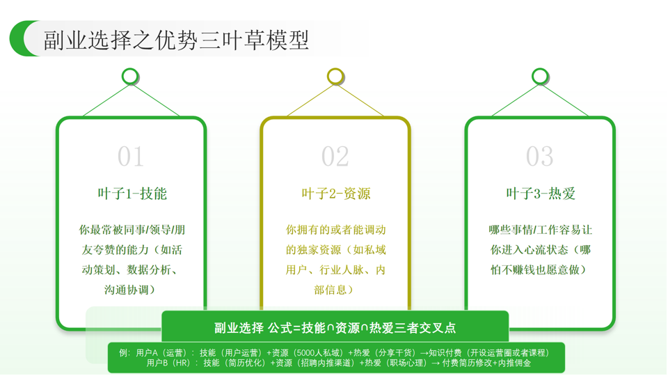 副业最优解选择公式=技能∩资源∩热爱 三者交叉点