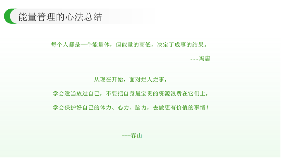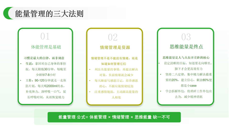 能量管理公式=体能管理+情绪管理×思维能量 三者缺一不可