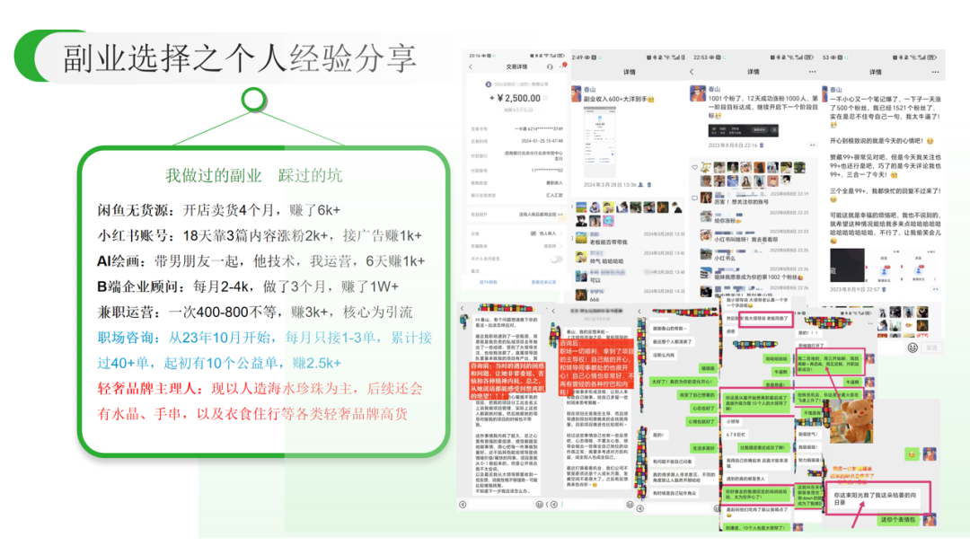 1)完成比完美更重要,用“小成就清单”积累自信,多尝试多试错,积累出一些商业嗅觉,增强自信是副业做成的关键,因为做副业需要信念!