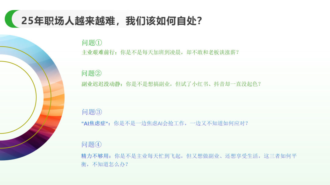 这篇文章,来自前段时间春山来野生运营做的快闪分享,主题为《2025职场破局指南:4个公式搞定涨薪、副业与防内耗》的文字精华。