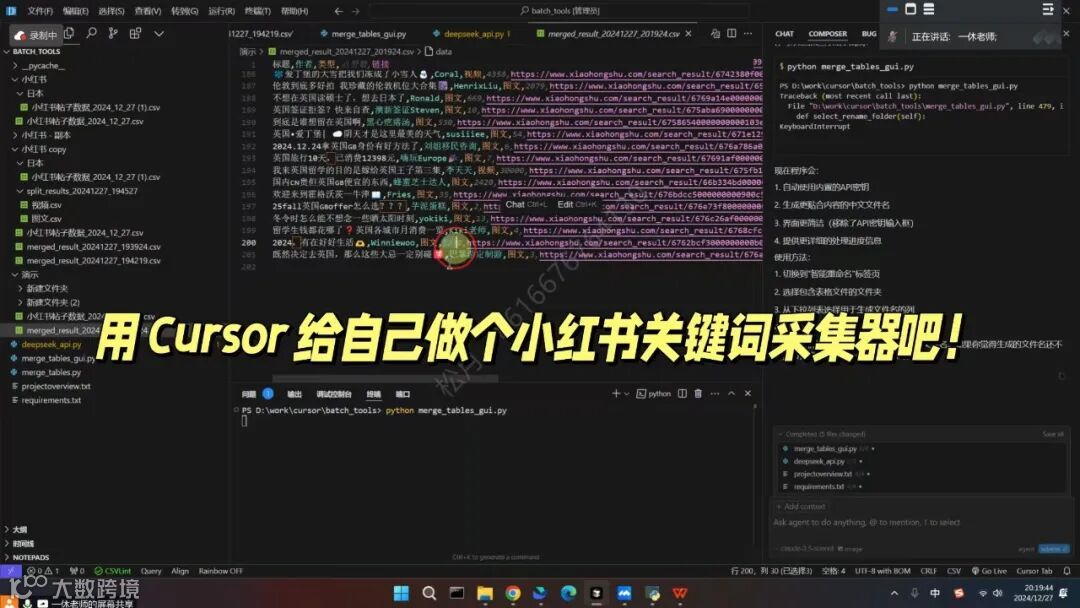 有了 Cursor,我可以:给自己做个表格批处理工具、给自己做个小红书关键词采集器……这不是把买某裔、某爪鱼、某瓜的钱省下来了,关键能根据我的需求精准设计啊,100%满足我的需求,提升工作效率!