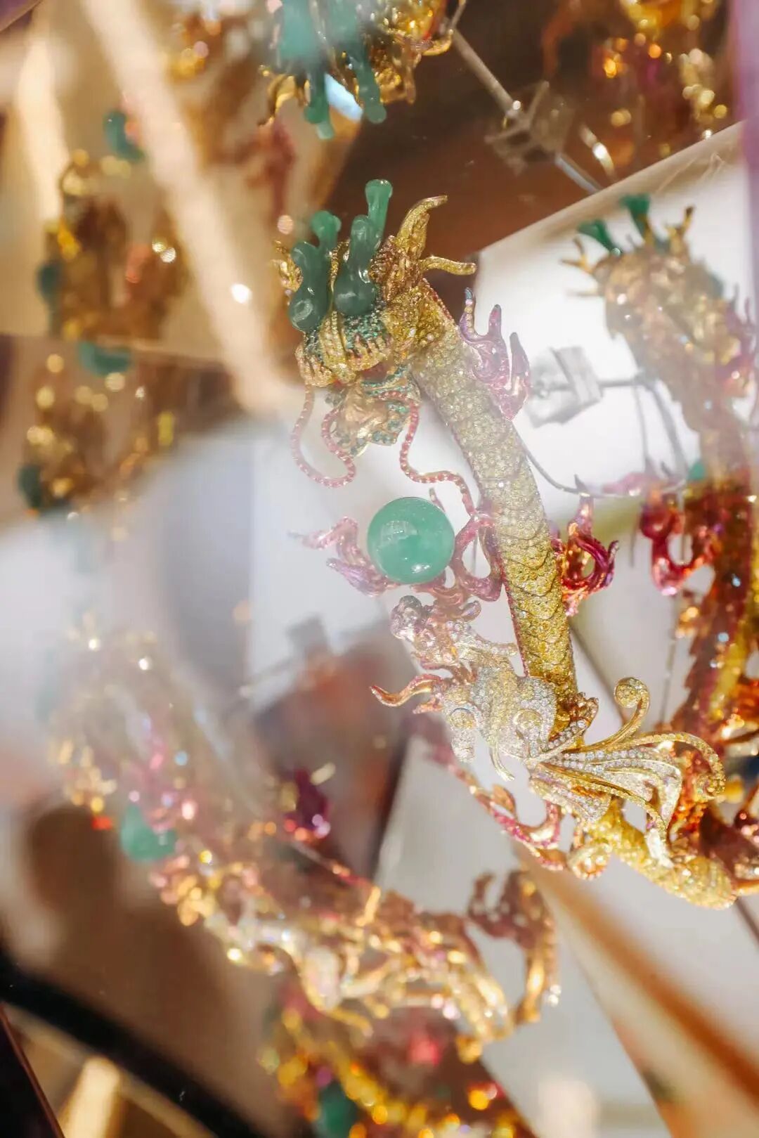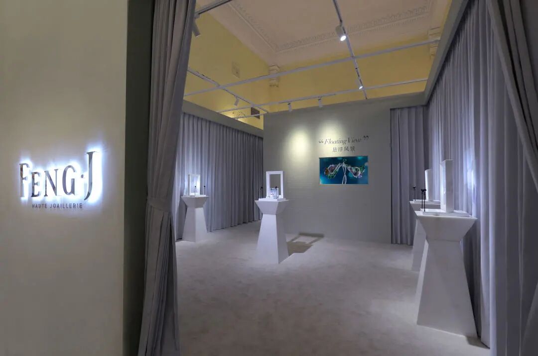 Wallace Chan在带来巨型雕塑的同时,也在中央大厅设有珠宝设计展位,集中呈现极具艺术性的精美设计。青年珠宝艺术家FENG.J也在序馆为大家呈现艺术珠宝主题「悬浮的风景」,「以宝石入画」和「悬浮镶嵌」将光、影、色的斑斓在三维空间里极致穿透,如梦如幻。