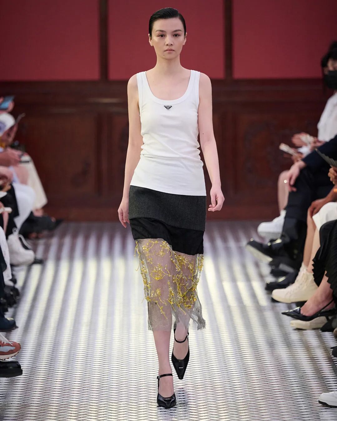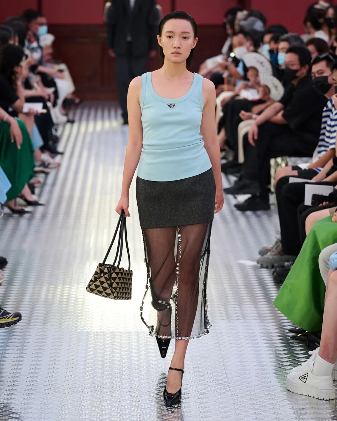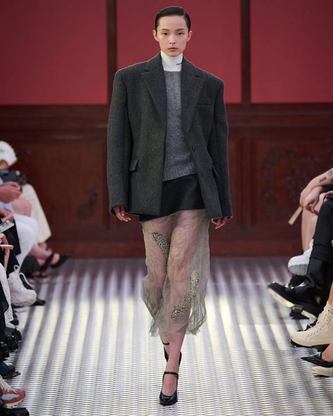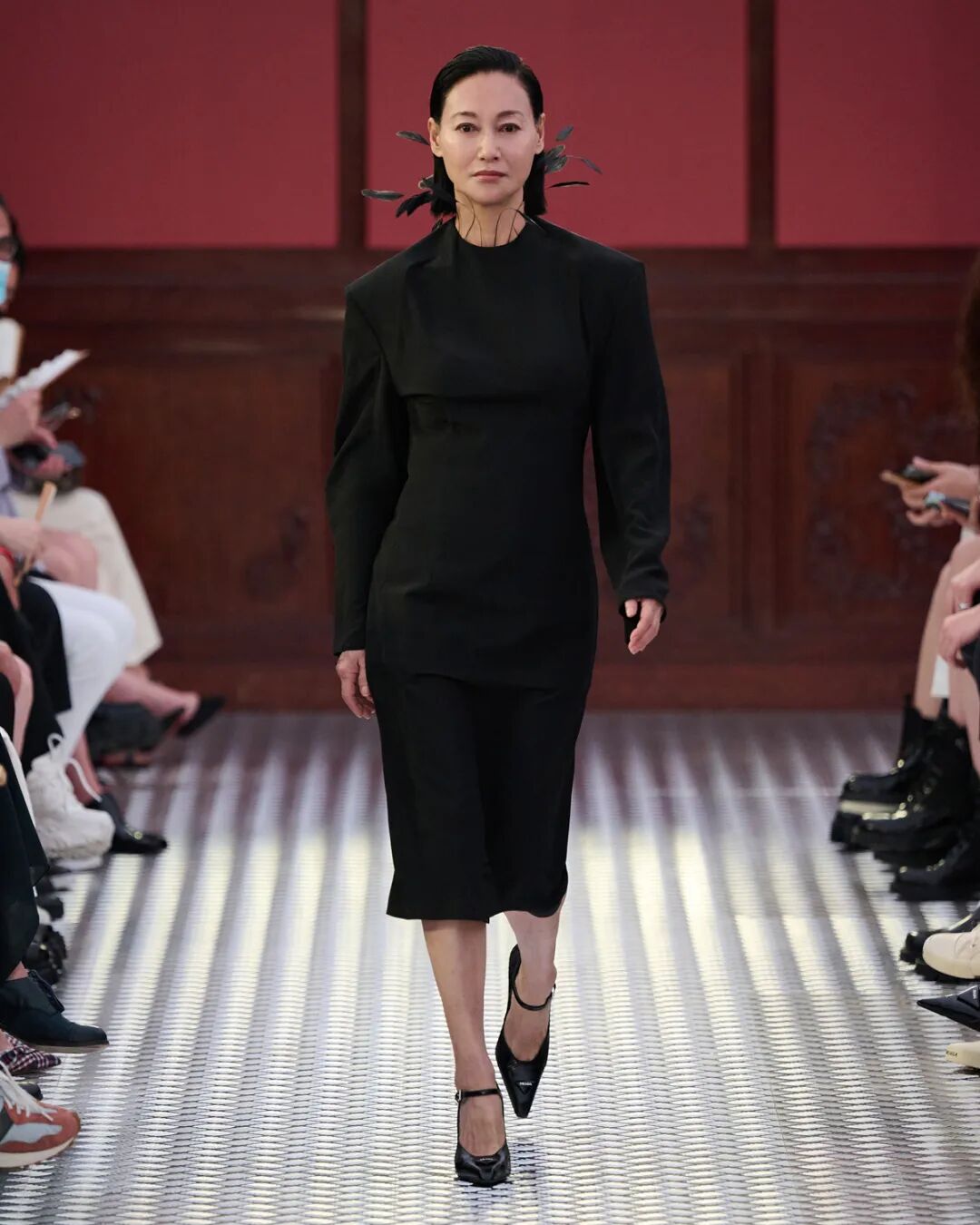 Prada invited nine renowned Chinese actors to join the show, including Prada Ambassadors Chun Xia, Li Yifeng alongside Bai Yufan, Guo Keyu, Huang Jue, Huang Miyi, Kara Wai, Liao Fan and Rayza. Supermodels Du Juan, Jin Dachuan, Ju Xiaowen, Cici Xiang and Zhao Lei also made special appearances to the show.