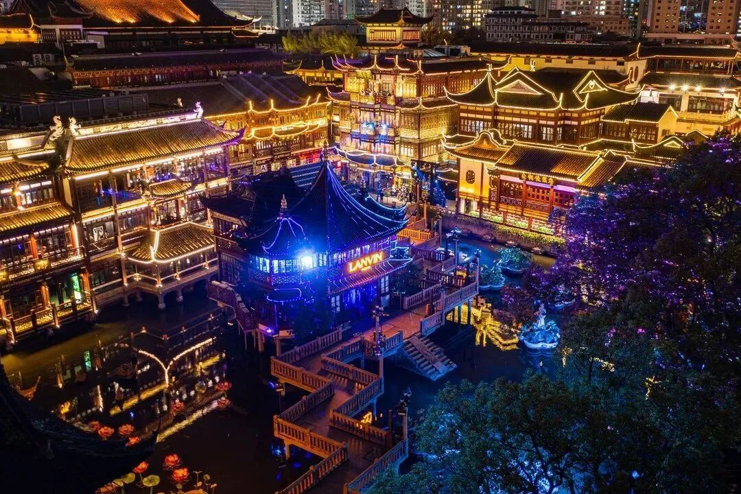 夜幕降临,钟灵毓秀的豫园被装点上各色华丽的灯光,楼阁的边沿和翘角上闪耀着金色的光芒,在周围高楼林立的建筑物中,显得更加夺目与优雅,亭台楼阁,小桥流水,灯火辉煌,仿佛在讲述着豫园全新的故事。