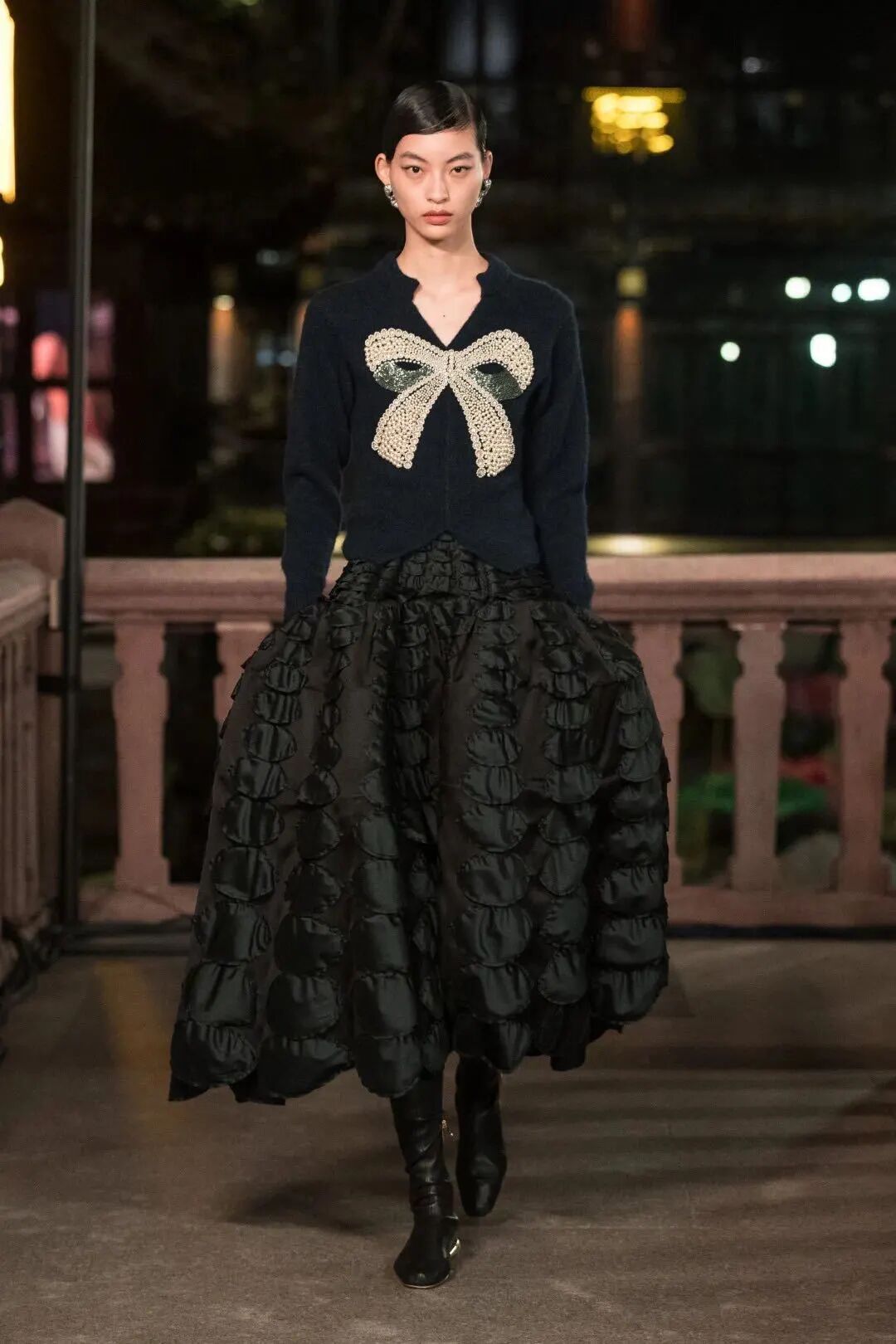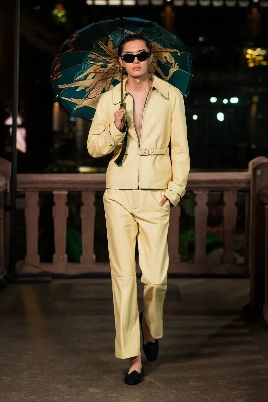 模特们身着展现LANVIN品牌创意总监Bruno Sialelli奇思妙想的华服,从九曲桥的两侧走出,一步一景,伴随着音乐的节奏,穿梭在这场中西时空之旅中。