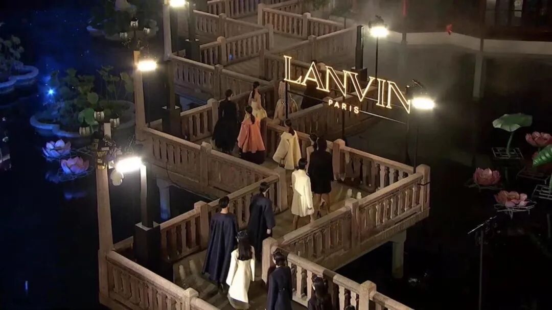 The Models wore gorgeous costumes designed by LANVIN Creative Director Bruno Sialelli , walking out from both sides of the Nine-zigzag Bridge, along with the rhythm of music, shuttling in the journey of time and space between China and the West.