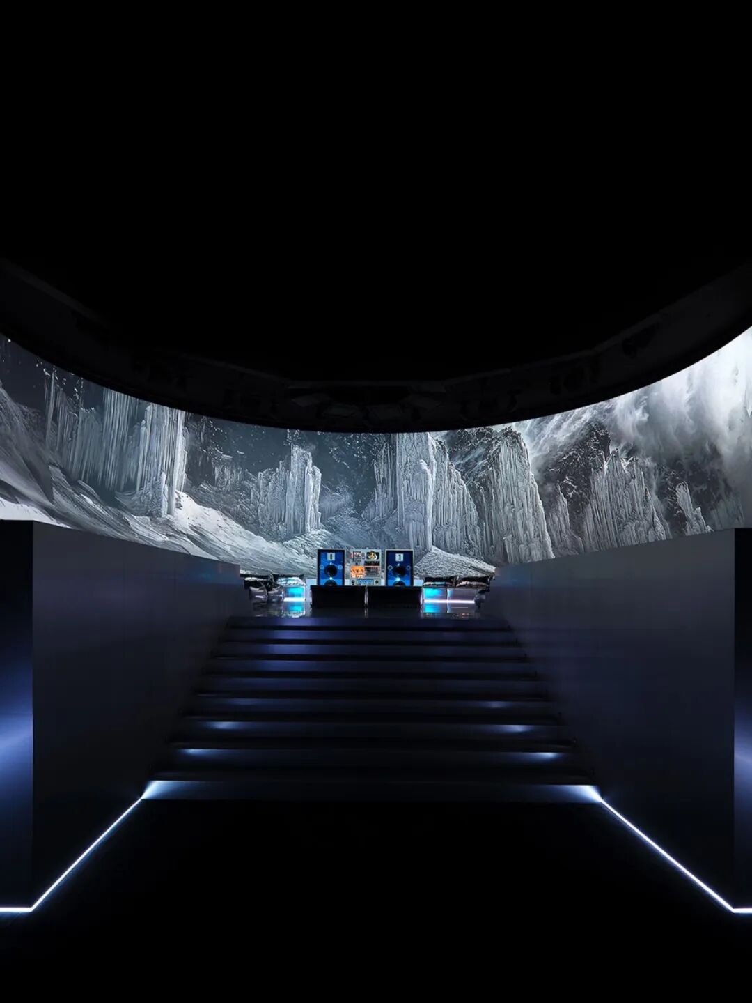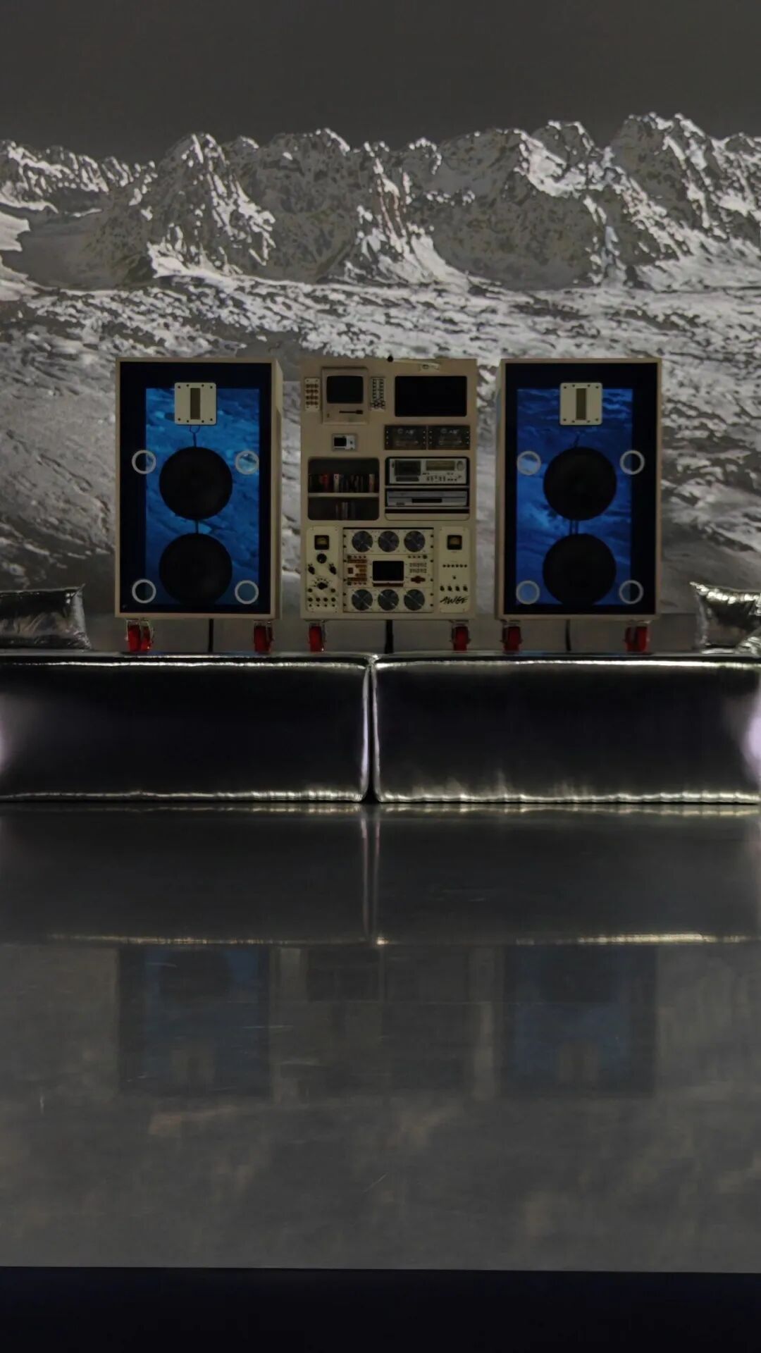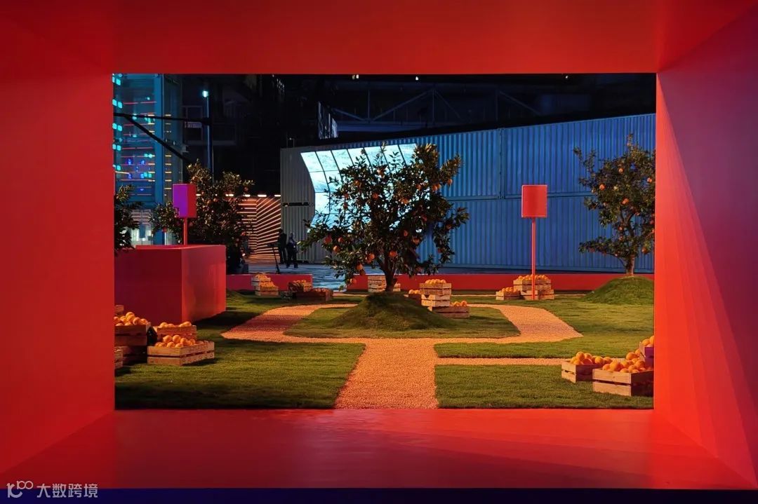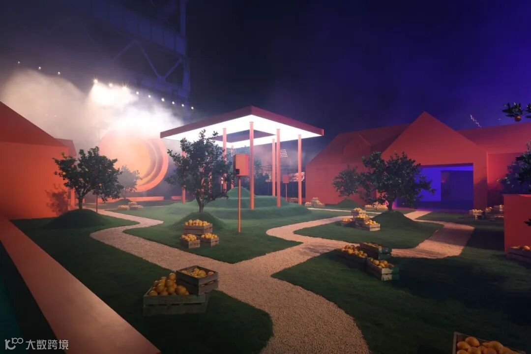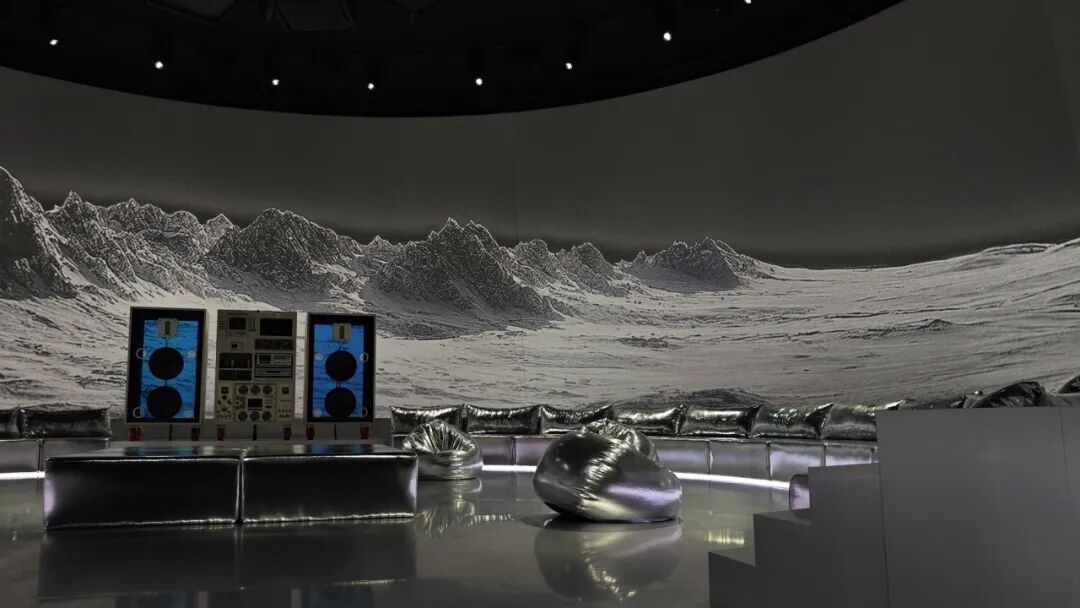 才华横溢的艺术家 A$AP Rocky 带来了充满实验性和创新精神的作品。宾客们被引领进入一个未来主义户外景观, 其中的休息区无缝延伸到投影屏幕上,融合真实场景与AI图像。