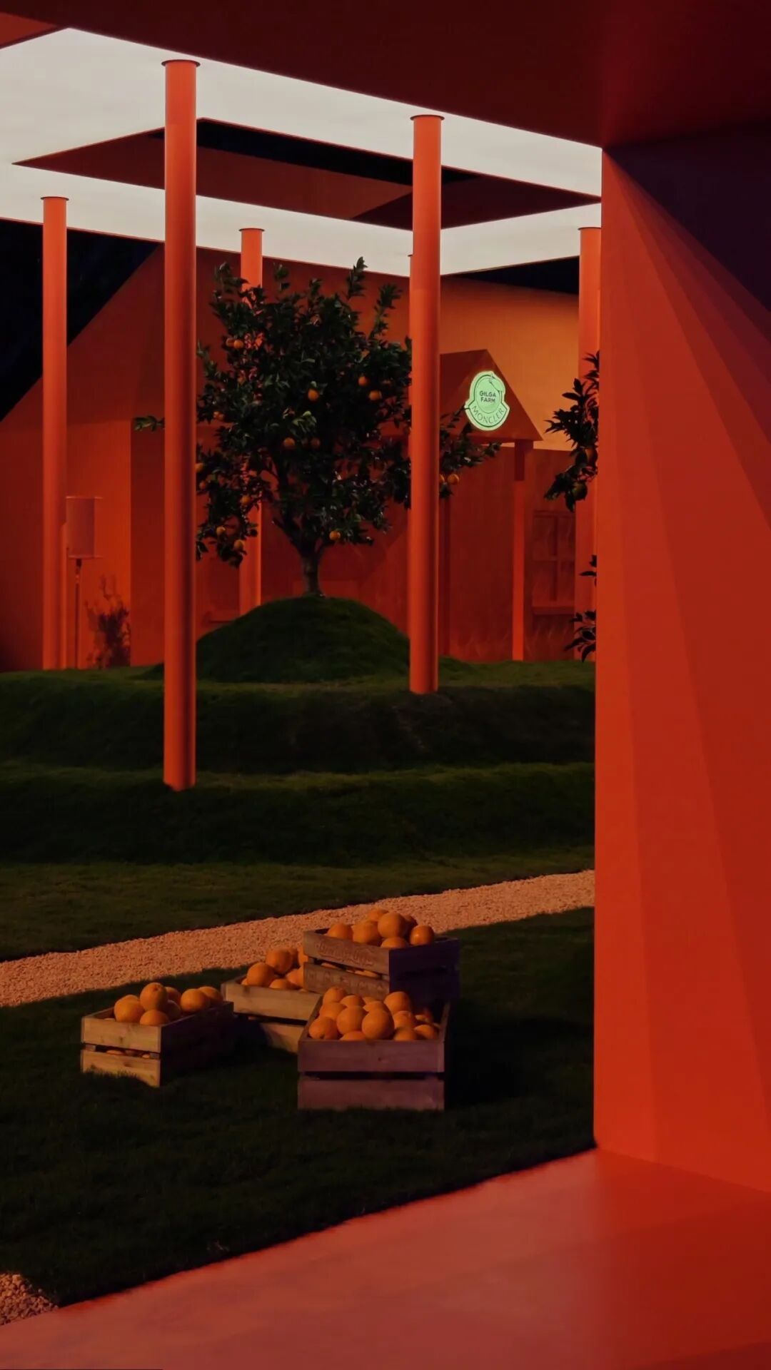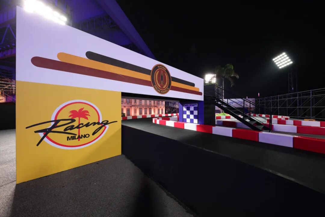 由 Francesco Ragazzi 创立的 Palm Angels 将意大利风格注入美式亚文化。该空间从赛车的速度和魅力中汲取灵感,呈现棕榈树林立的卡丁车赛道,捕捉70年代赛车竞速的氛围精髓。