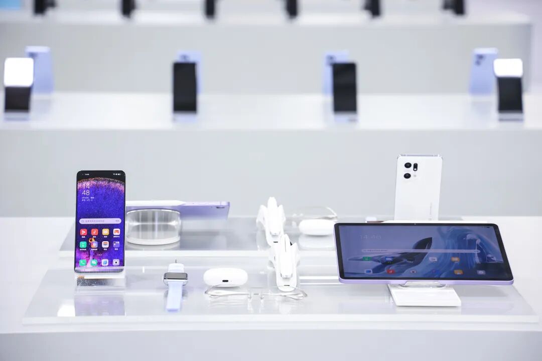 产品体验区精心打造为纯白空间,简洁的设计凸显空间感。最新Find X5系列等新品井然陈列,方便顾客的体验使用。