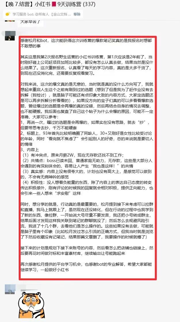 3)9天时间,同群里小伙伴交流和倒逼输出,从思维上理解小红书和视频号联动运营的玩法