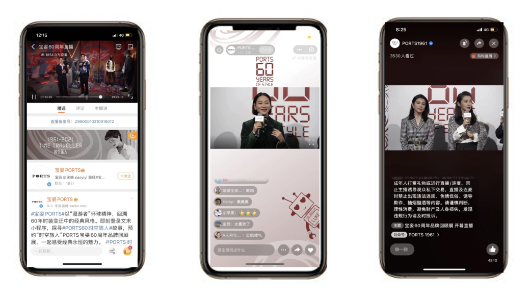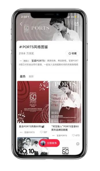 前期选取博主在微博平台参加#PORTS60风格挑战#,以及在小红书平台参加#PORTS风格图鉴#话题,复刻品牌经典LOOK,引发话题讨论;中期合作多位微信博主,深度解读品牌故事;后期合作小红书博主,参与线下打卡分享,持续造势。