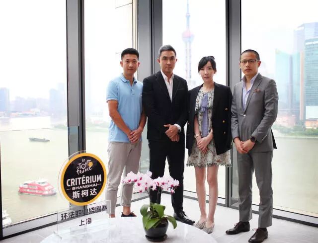 ▲左起:“环法中国第一人”计成、环法中国系列赛事主办方艾德韦宣董事总经理刘锦耀、 艾德韦宣体育总经理周琦、环法中国系列赛事总监邹成出席赛事发布活动